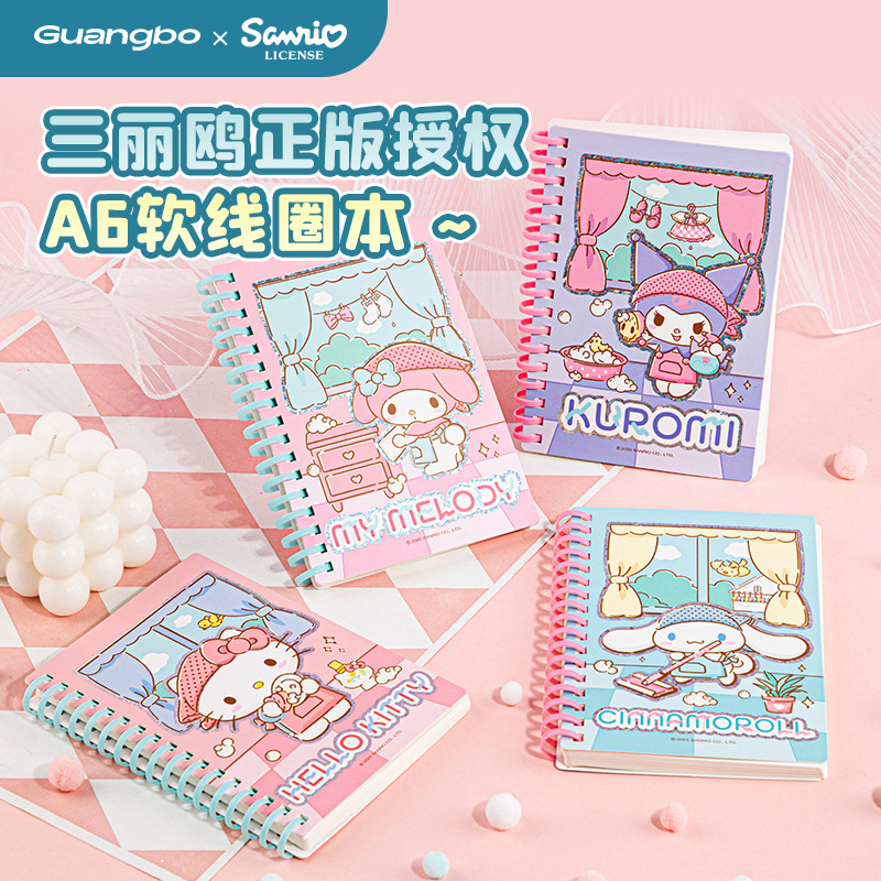 산리오 A6 소프트 코일 노트, 고급스러운 쿠로미 정품 미니 포켓 노트, 휴대용 소녀 하트 다이어리스토어 가기