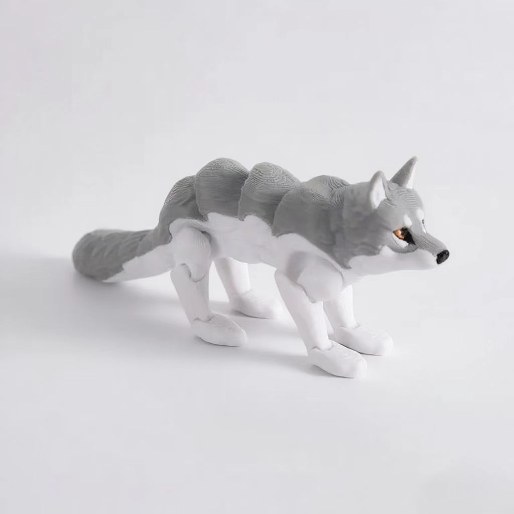 3D 프린팅으로 제작된 관절이 움직이는 백여우 허스키의 팔다리가 움직이는 데스크탑 장식 장난감