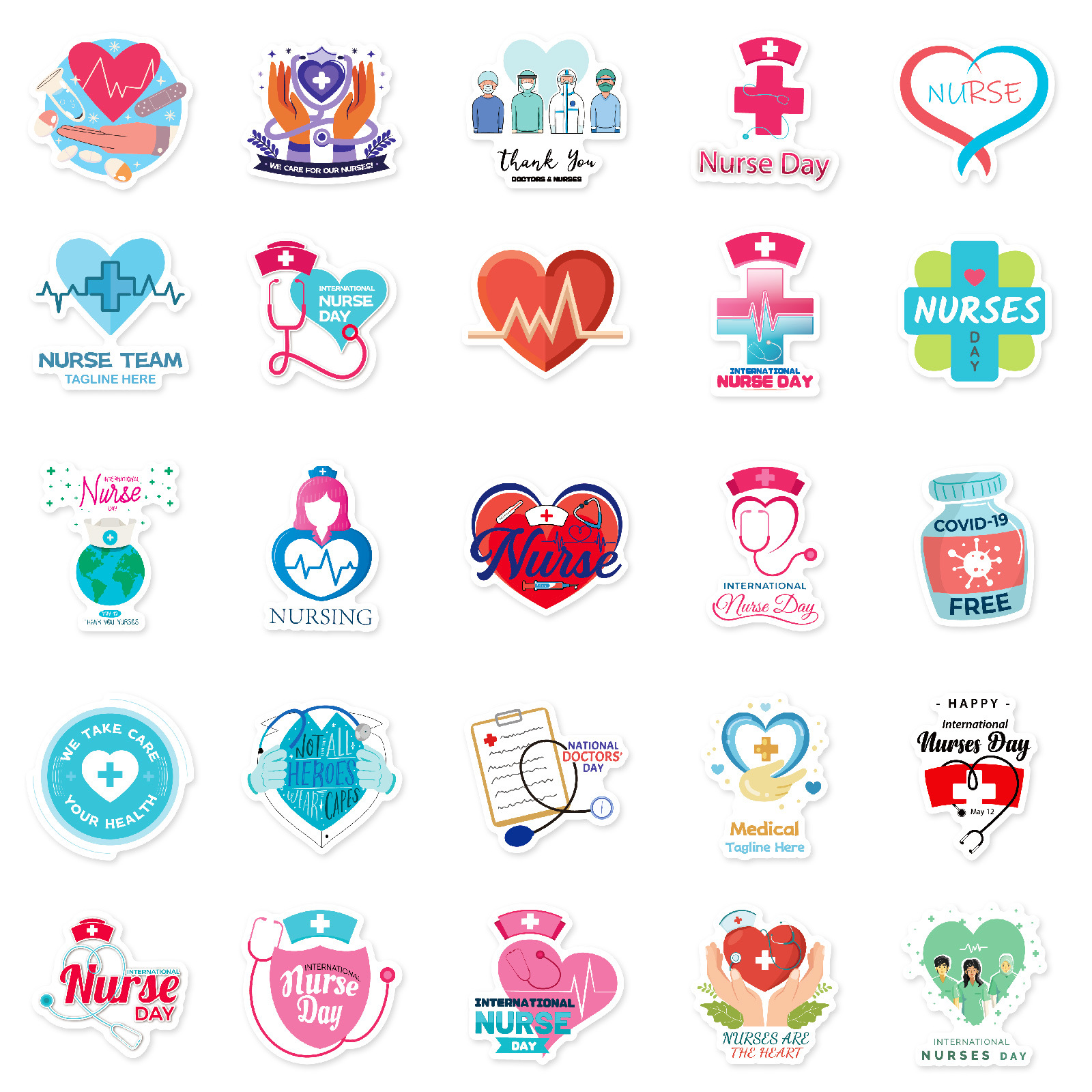 뜨거운 뜨거운 50 간호사의 날 의료 테마 스티커 축제 장식 방수 스티커 재고 도매스토어 가기