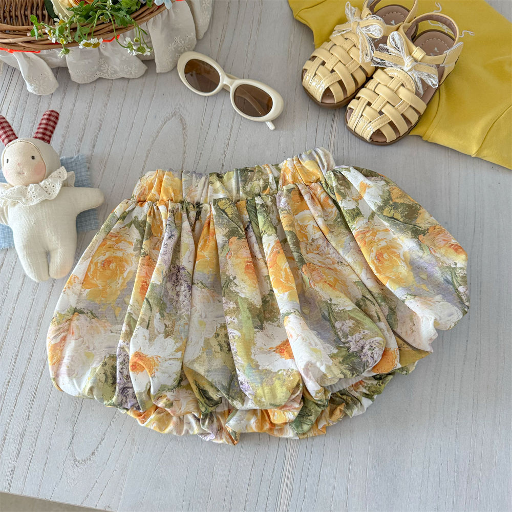 어린이 스타 라운드 소녀 여름 정장 새로운 유치원 아기 스타일 보우 티셔츠 + 꽃 스커트 투피스 세트