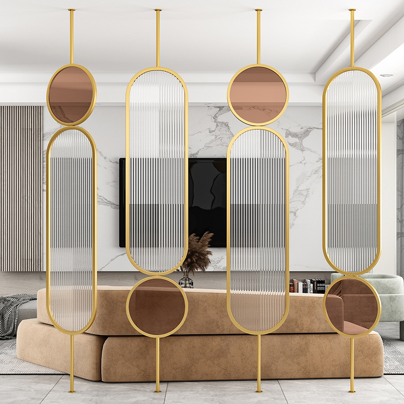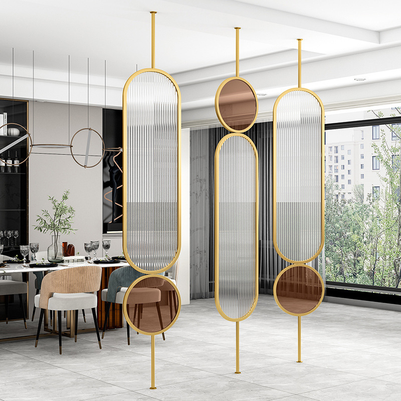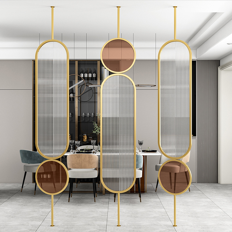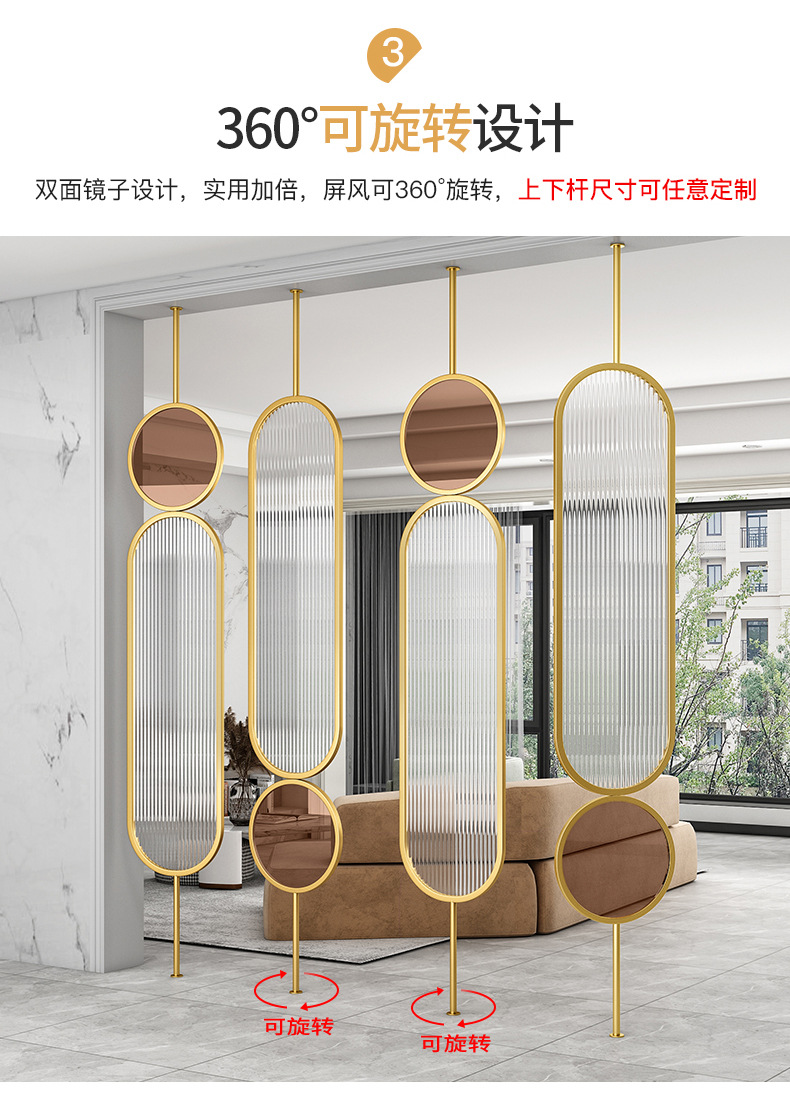 가볍고 고급스러운 Changhong 파티션 유리 스크린 회전식 간단한 거실 입구 스테인레스 스틸 장식 차단 스크린스토어 가기