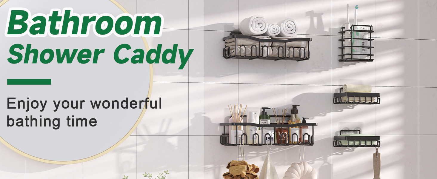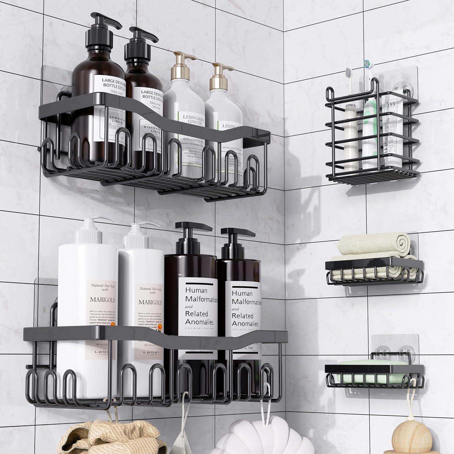 맞춤형 Amazon 펀치 프리 욕실 선반 철제 욕실 세면 용품 벽걸이 형 보관함