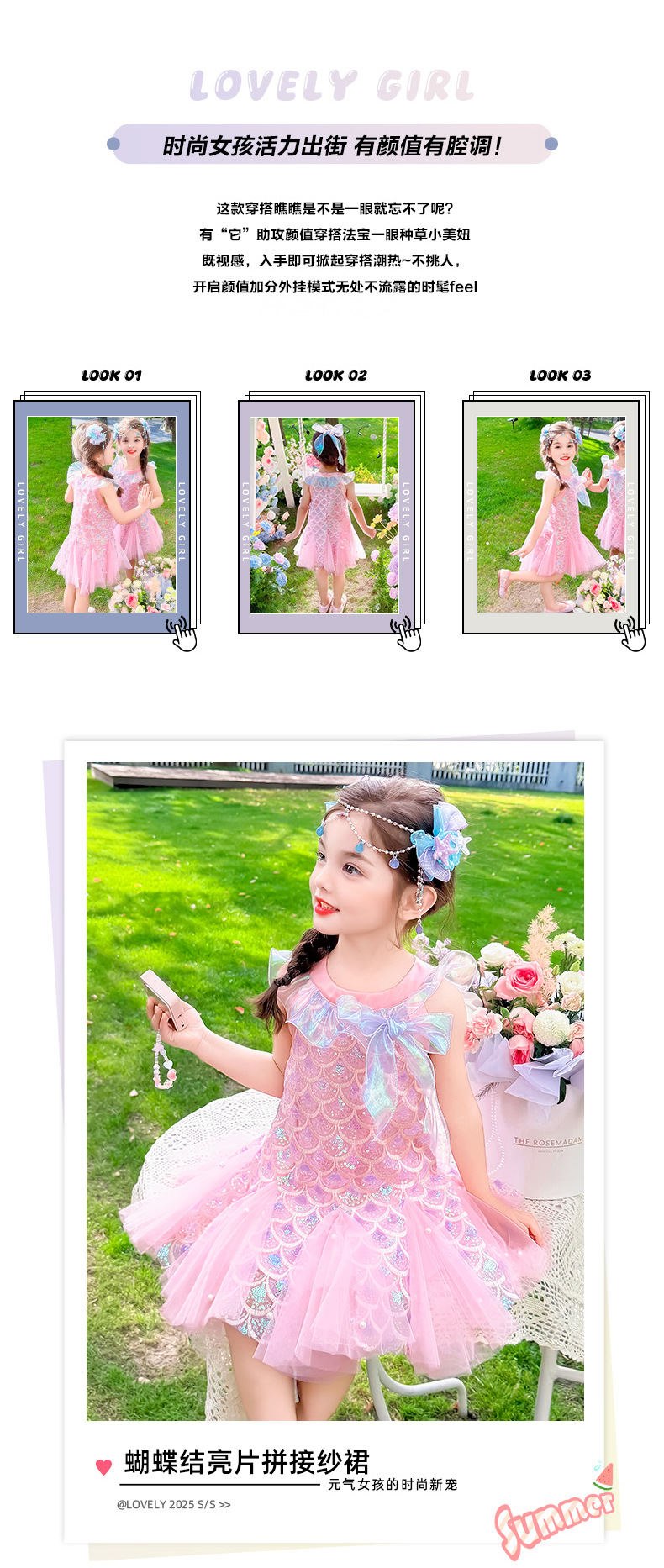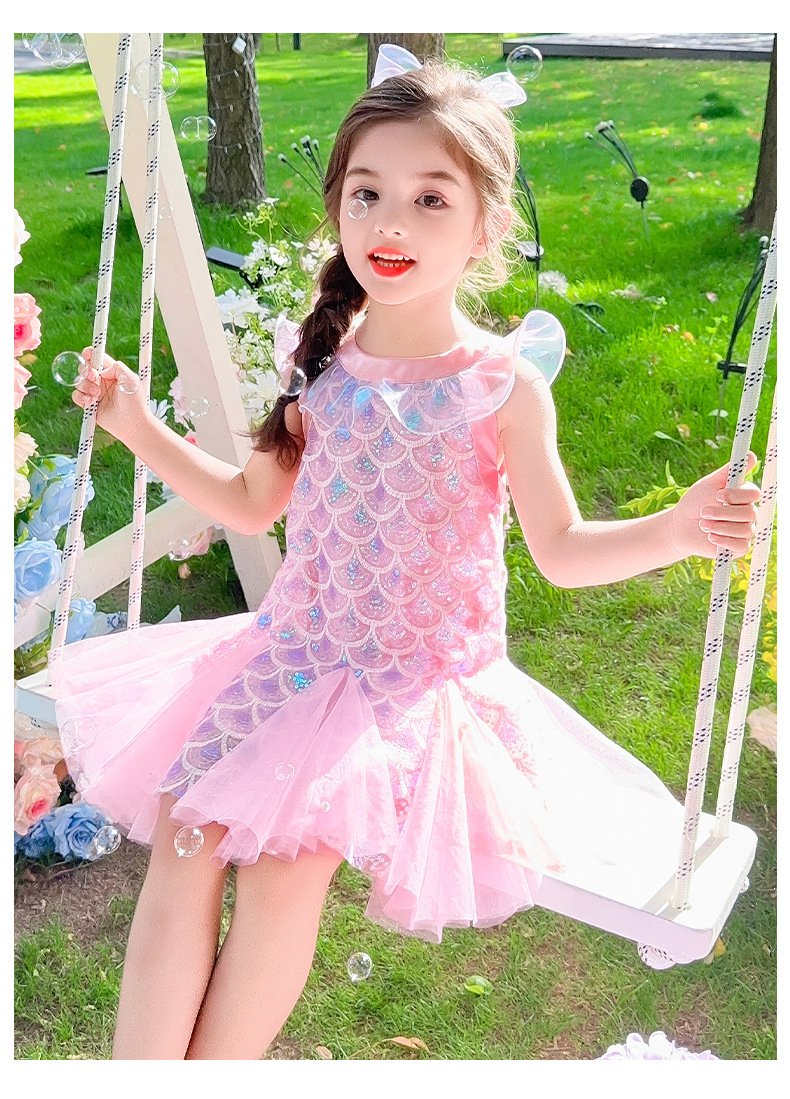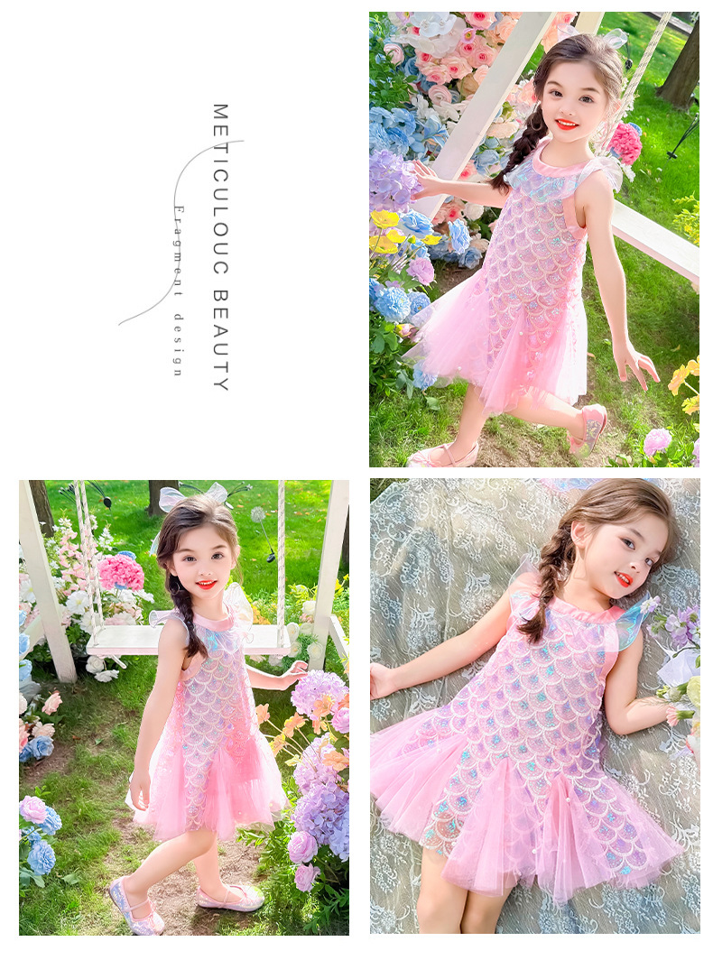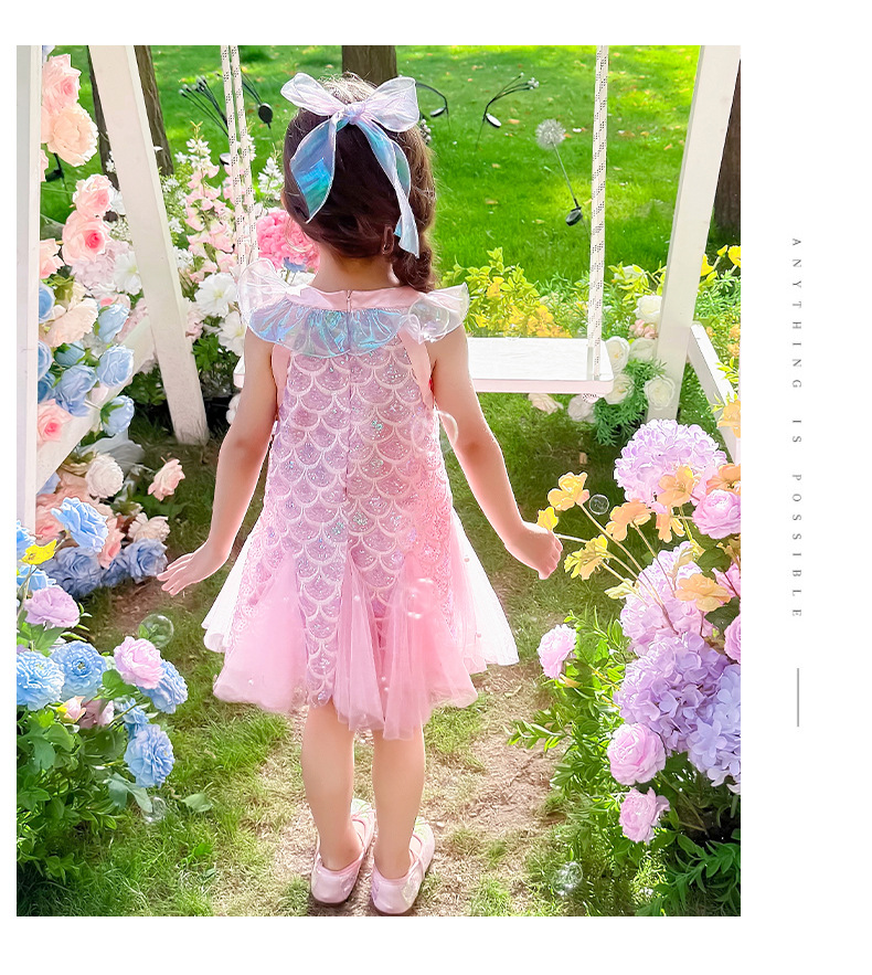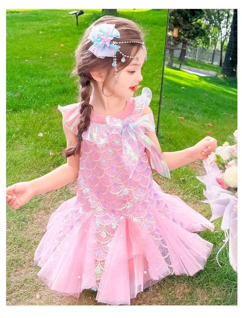 소녀 인어 원피스 여름 2025 새로운 스타일 아기 소녀 스퀸 활 바느질 공주 스커트스토어 가기