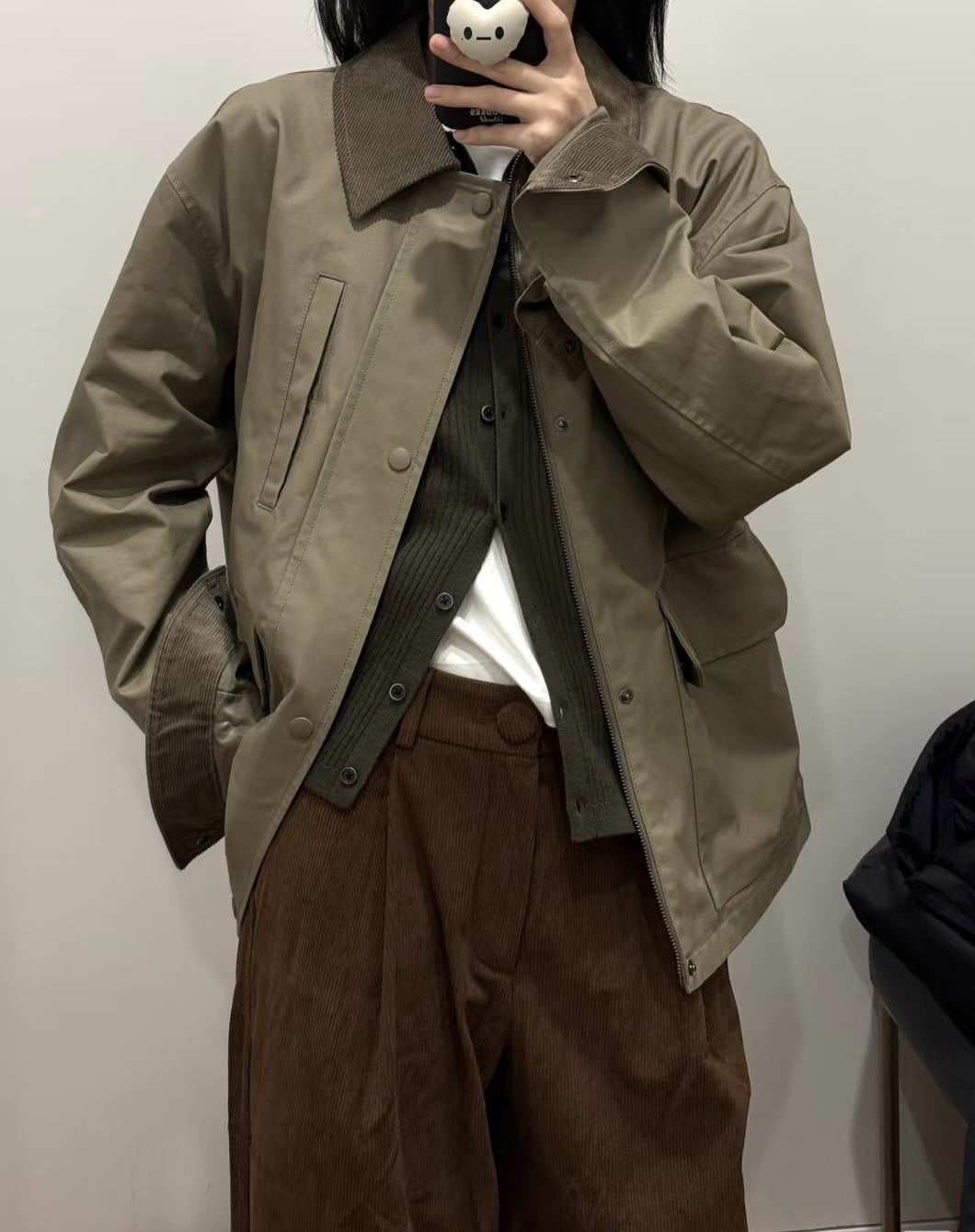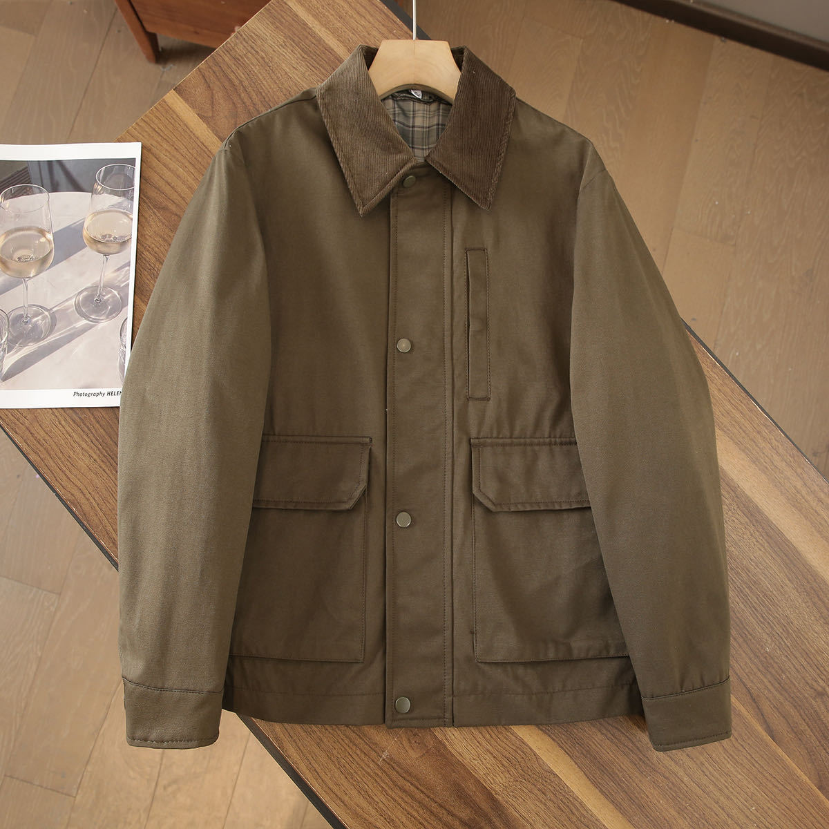 피팅룸+클래식 디자인 커플스타일! 남성용 워싱 로우 원사 아메리칸 루즈 워크웨어 라펠 재킷스토어 가기
