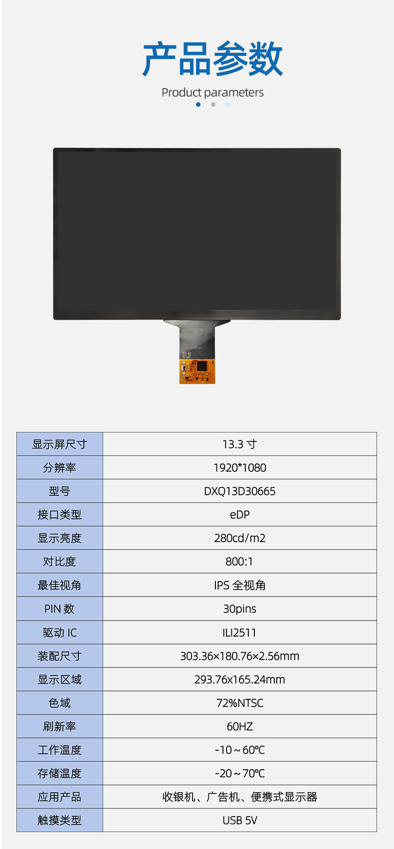 13.3인치 1920*1080TFT 디스플레이 USB 터치 유형 eDP 인터페이스 휴대용 태블릿 디스플레이스토어 가기