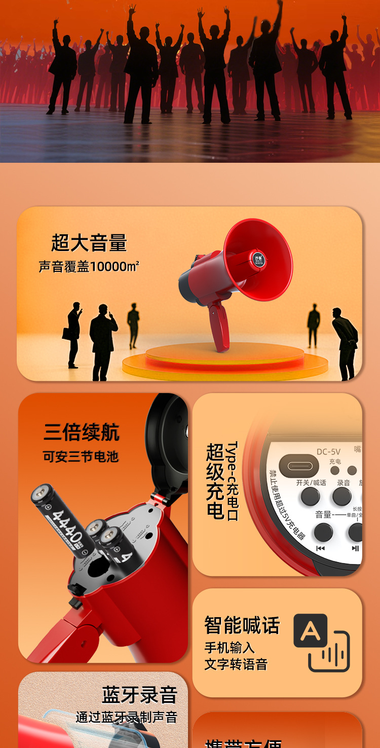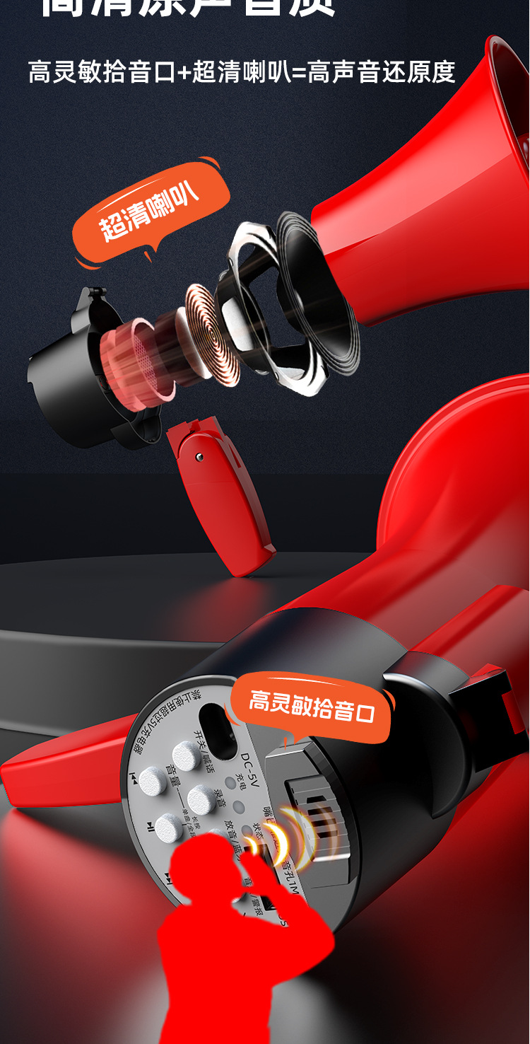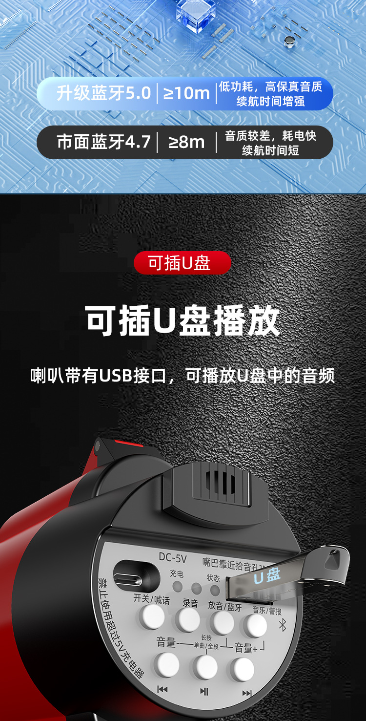 스피커, 노점용 확성기, 판매대, 블루투스 휴대용 메가폰, 노점용 녹음 가능, 휴대용 야외 스피커