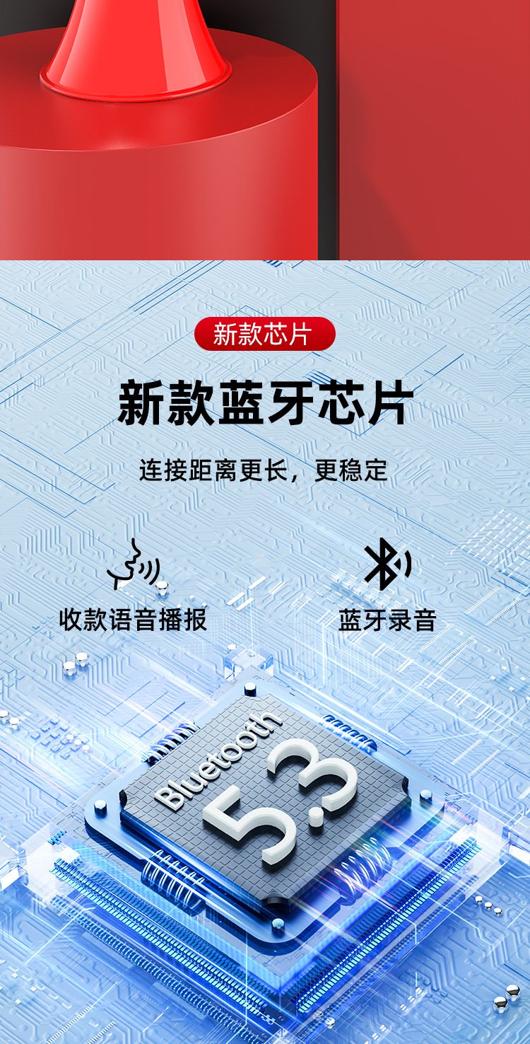 • 블루투스 버전 - 300초 녹음 + 블루투스 + 4440mWH 리튬 배터리 + 3C 충전 헤드 + 결제 방송