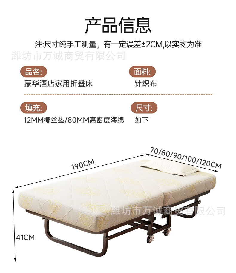 싱글 호텔 추가 침대 접이식 침대 사무실 침대 민박 임대실 간병용 침대 휴대용 접이식