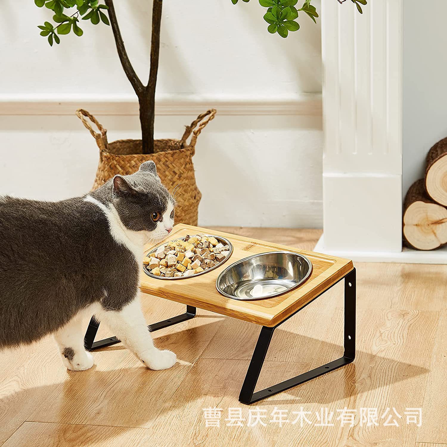 고양이 사료 물 그릇 홀더 기울어진 강아지 식탁 단단한 나무 더블 그릇 고양이 피더 실내 애완 동물 고양이와 개 먹이 랙스토어 가기