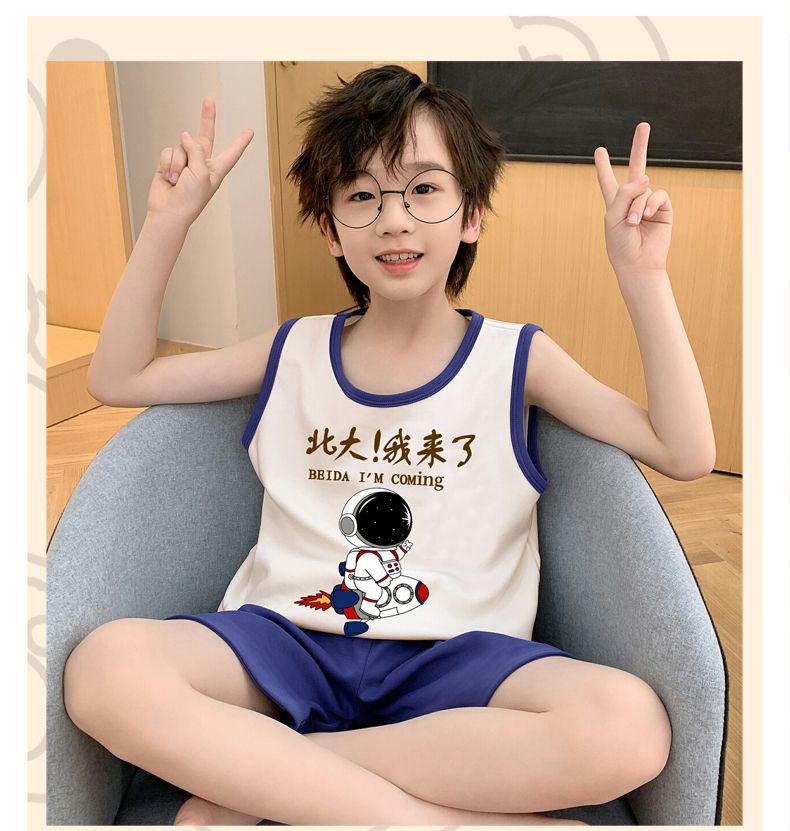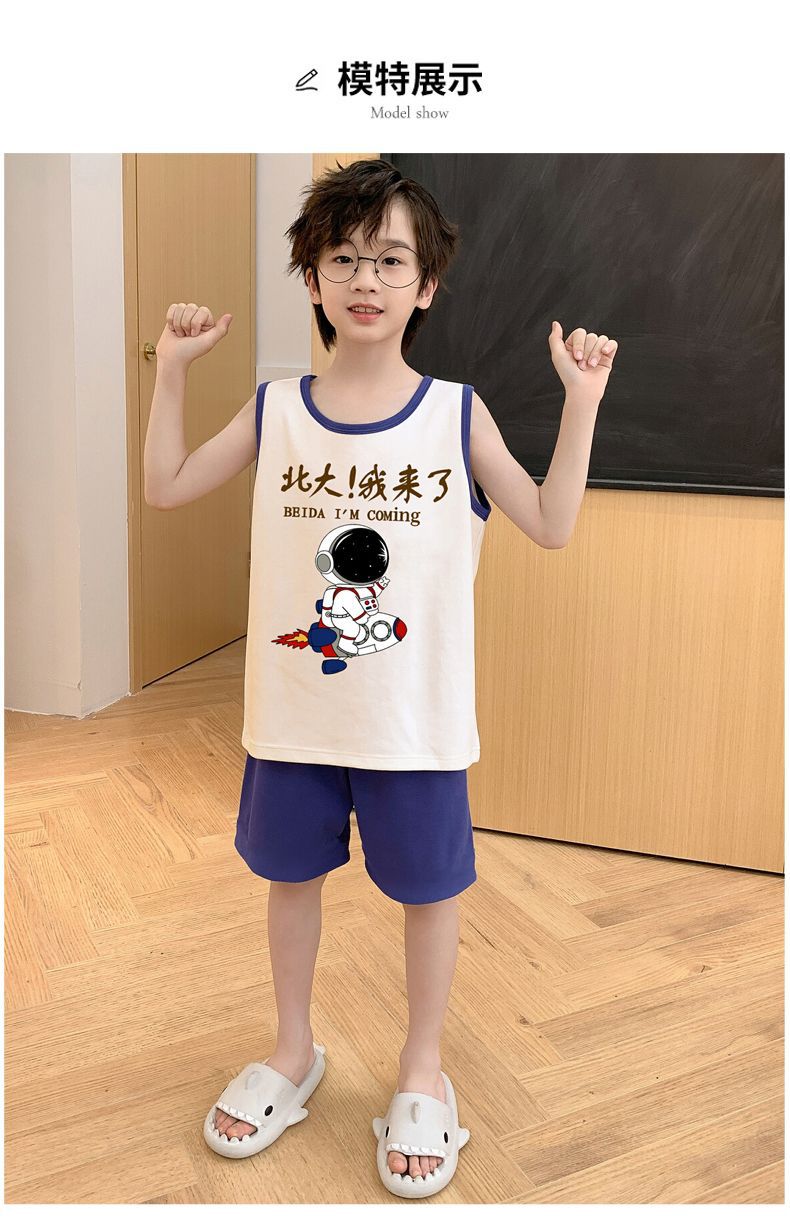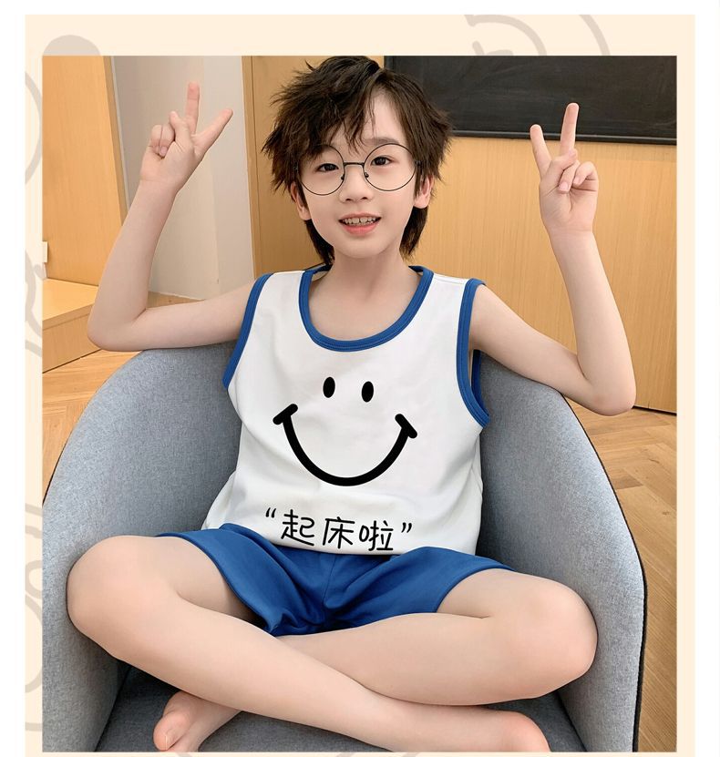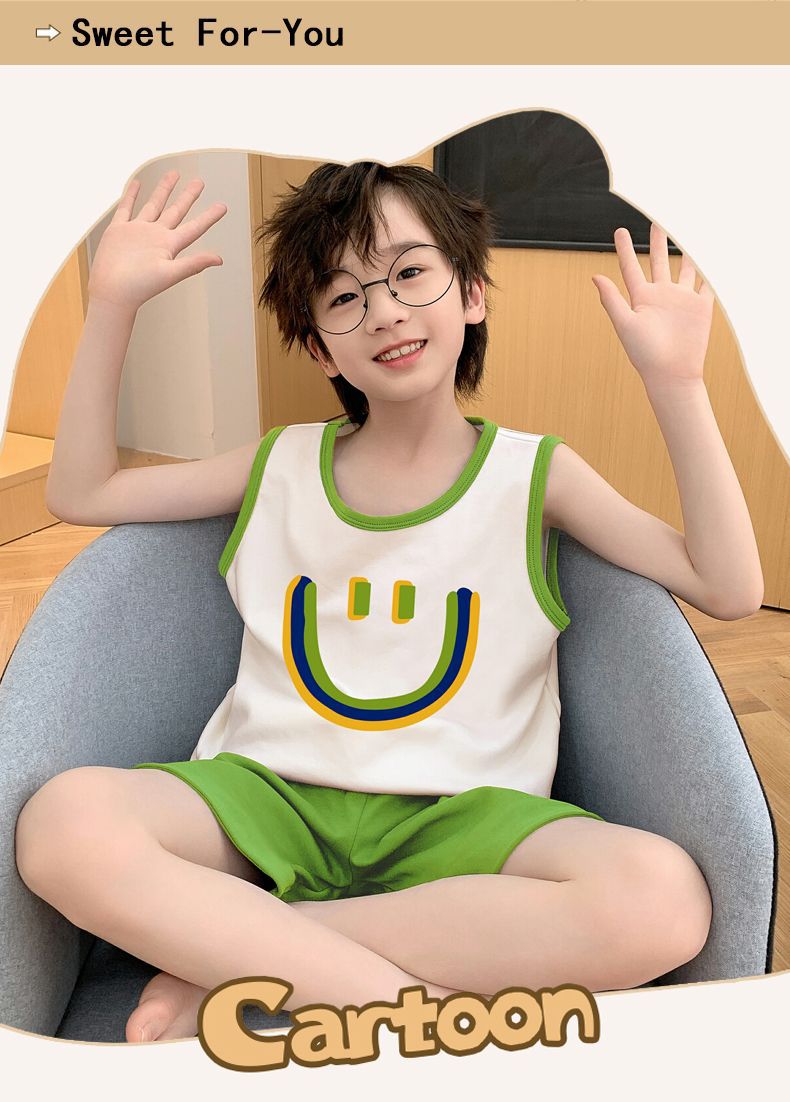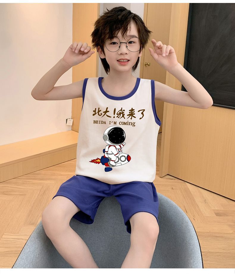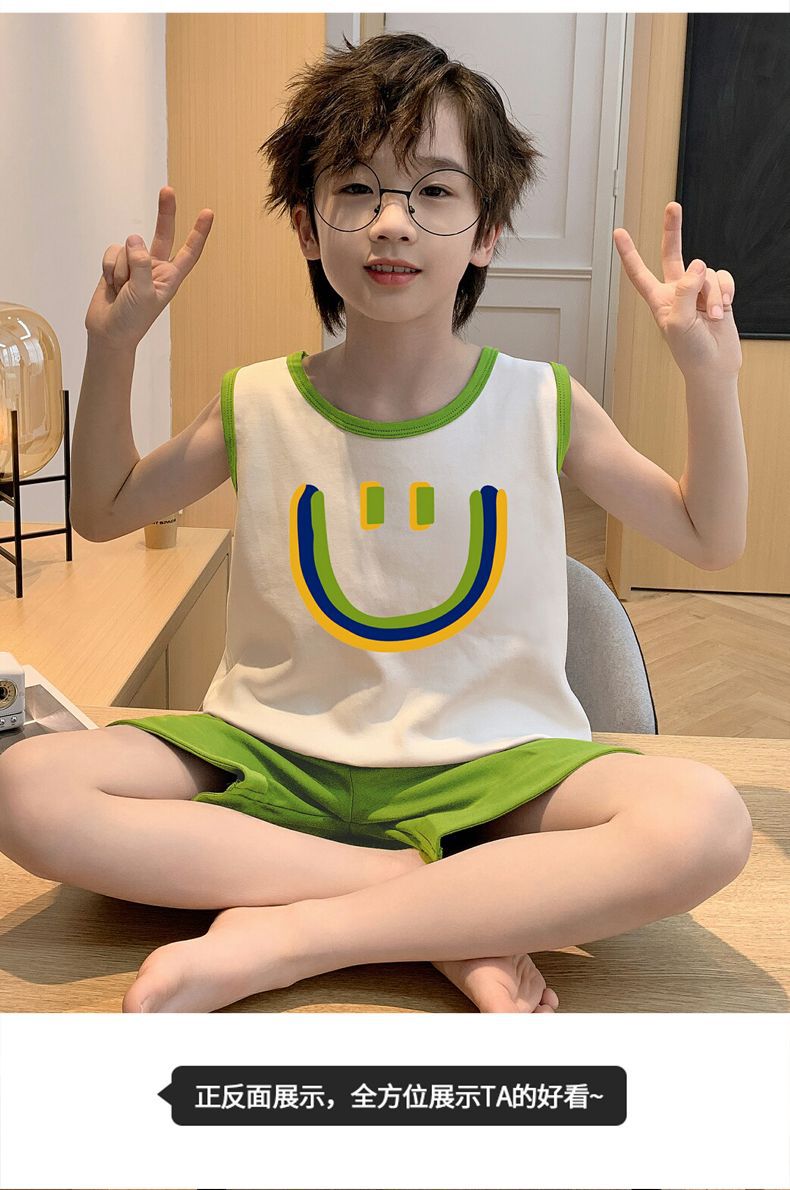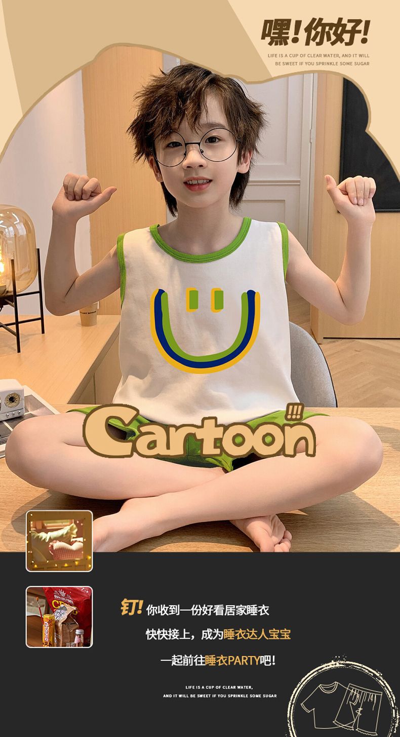 남성용 잠옷, 여름 남아용 면 조끼 반바지, 만화 캐주얼 청소년 및 아동용 홈웨어 세트, 외부에서 착용 가능