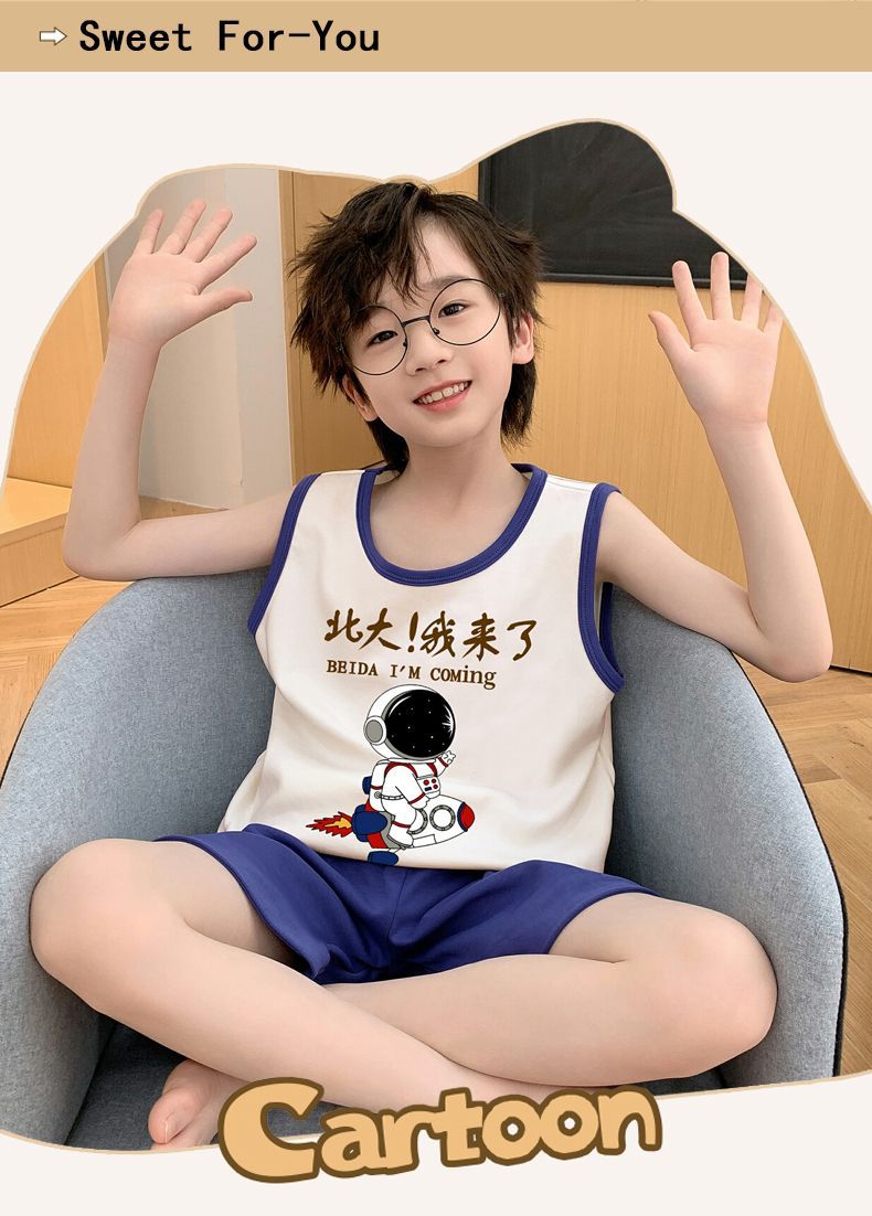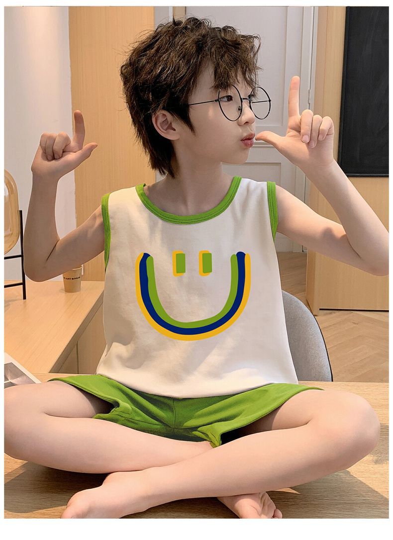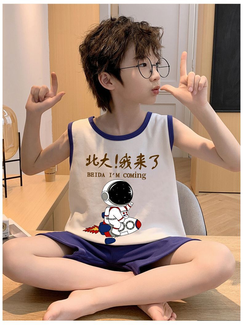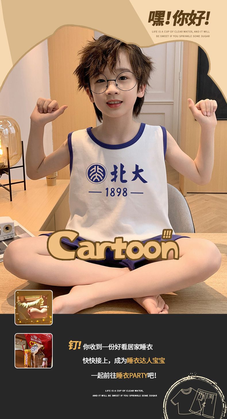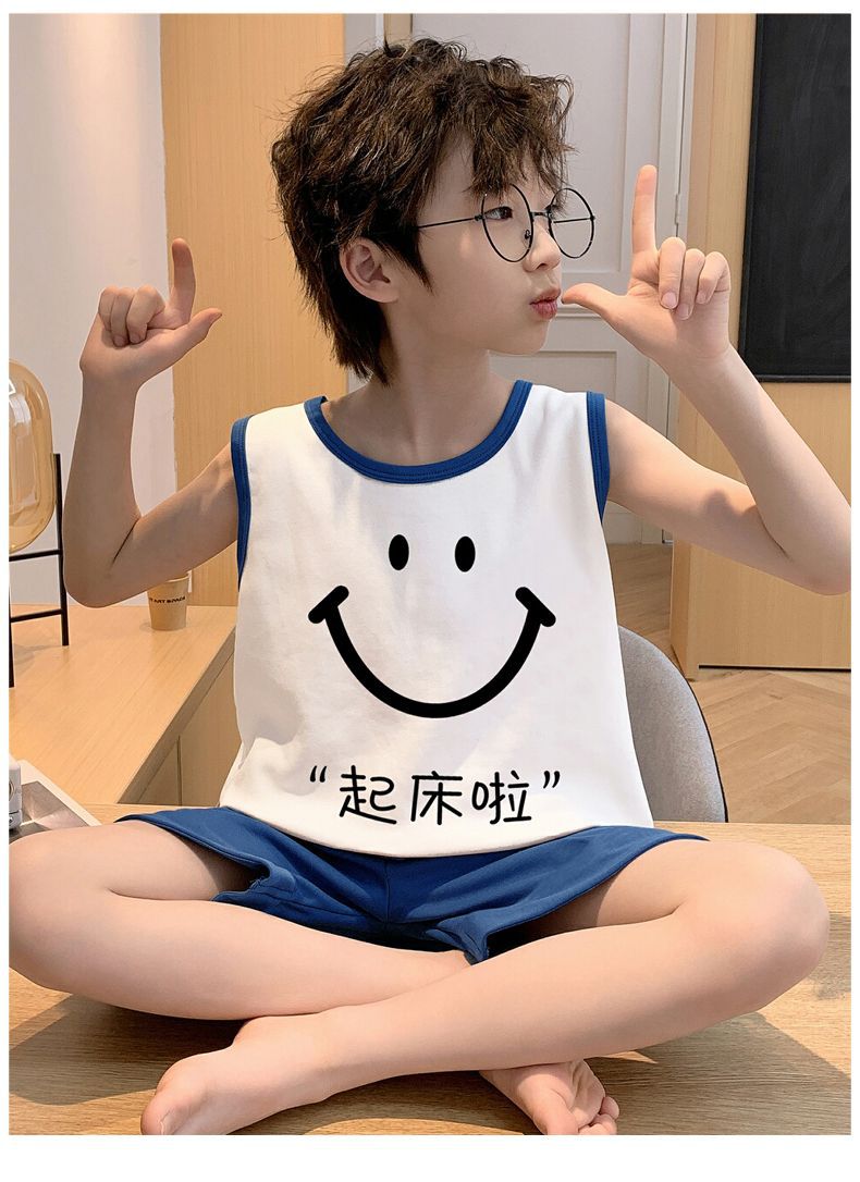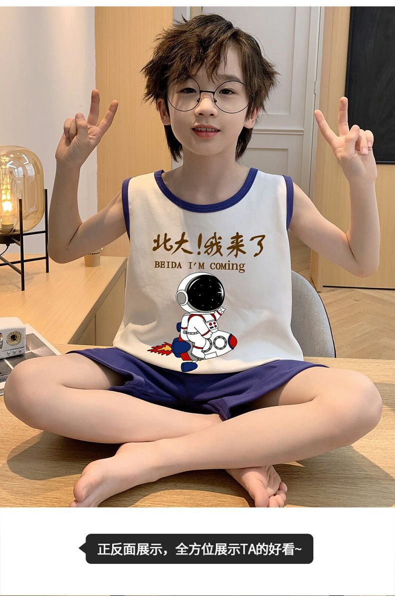 남성용 잠옷, 여름 남아용 면 조끼 반바지, 만화 캐주얼 청소년 및 아동용 홈웨어 세트, 외부에서 착용 가능