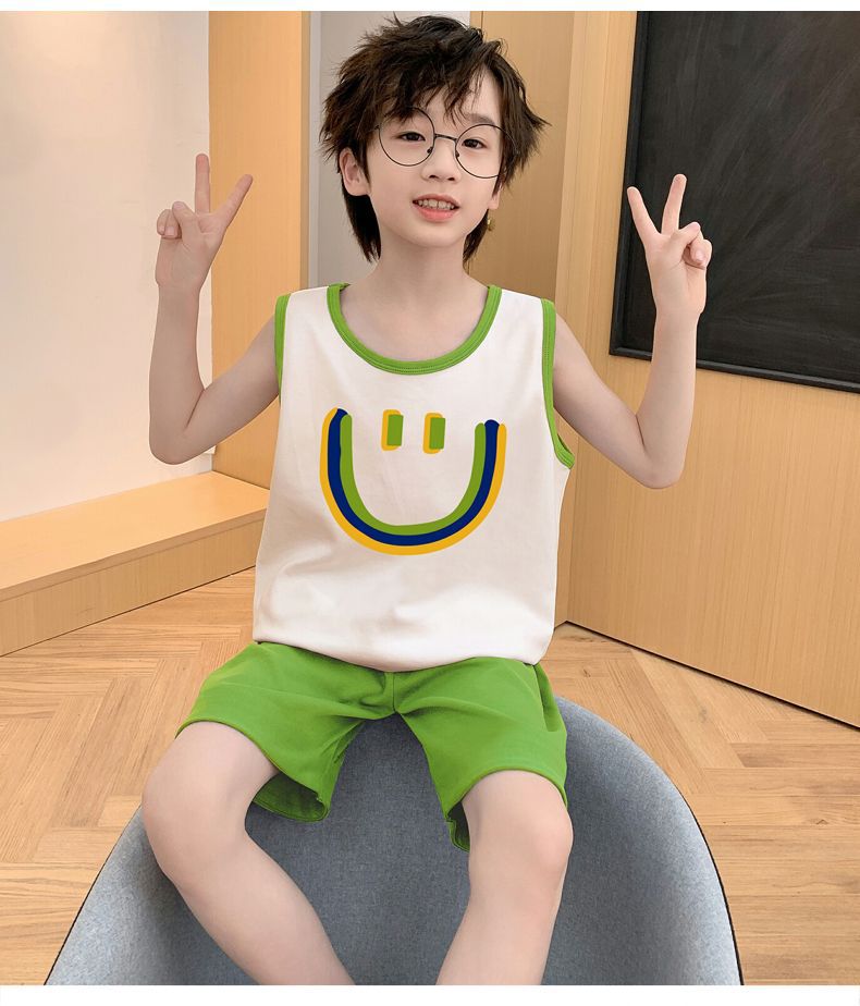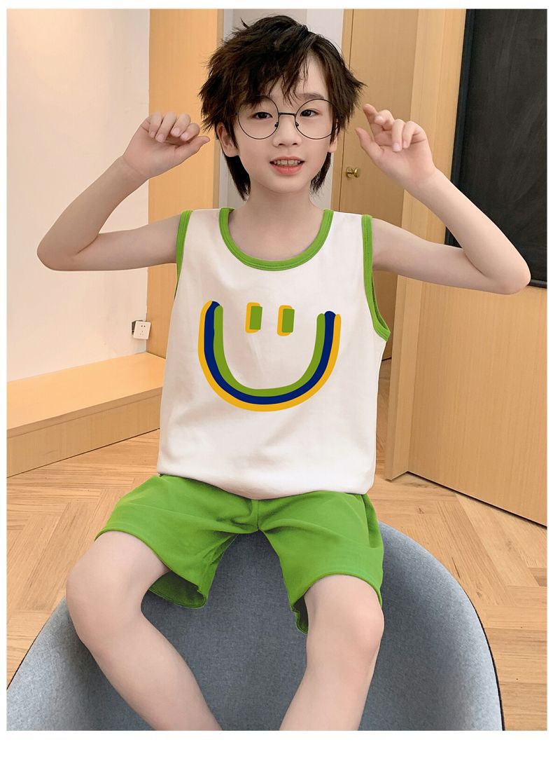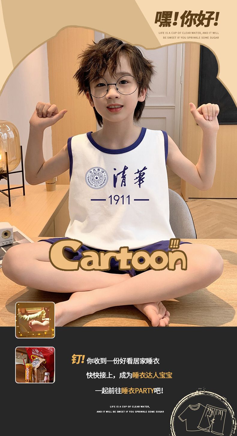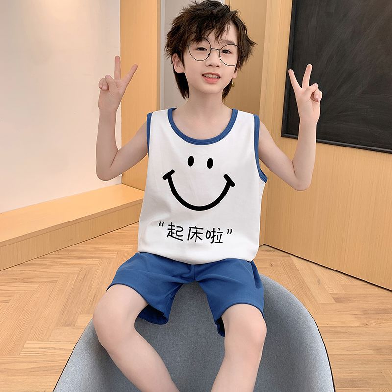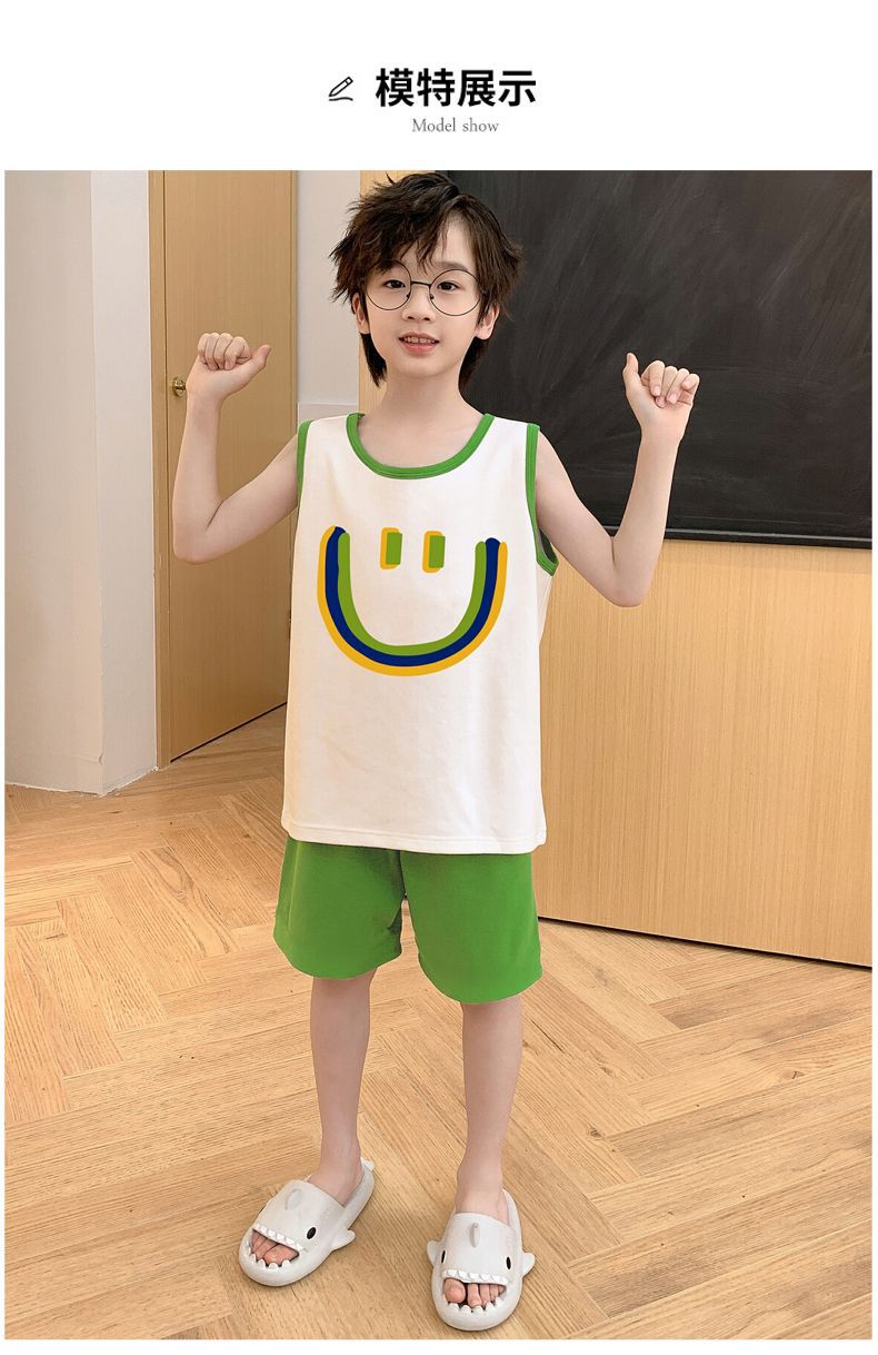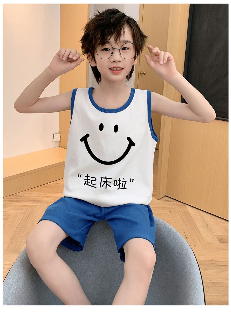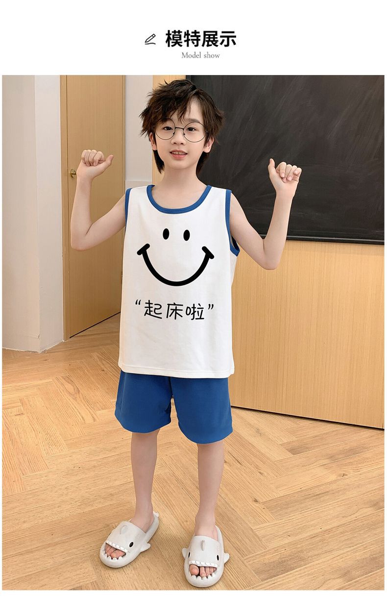 남성용 잠옷, 여름 남아용 면 조끼 반바지, 만화 캐주얼 청소년 및 아동용 홈웨어 세트, 외부에서 착용 가능