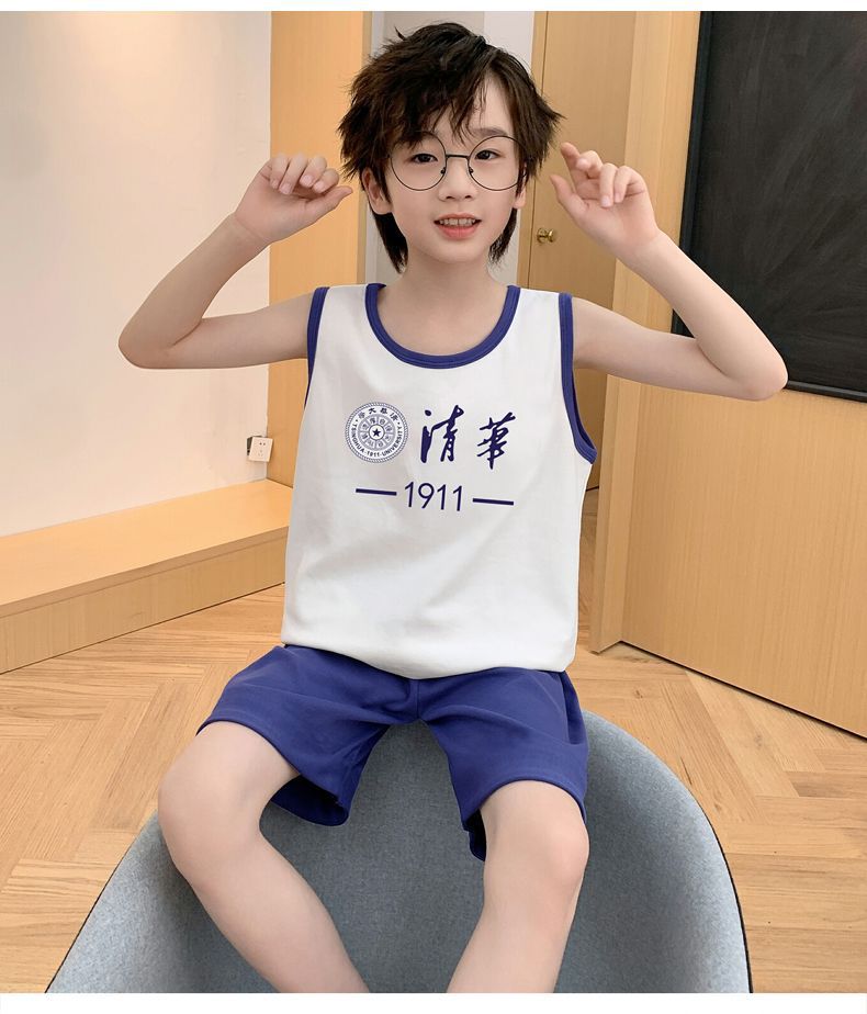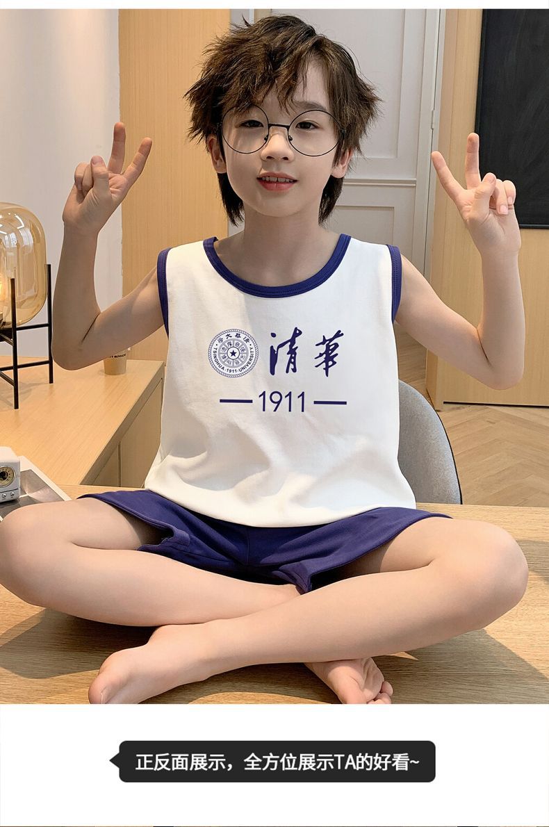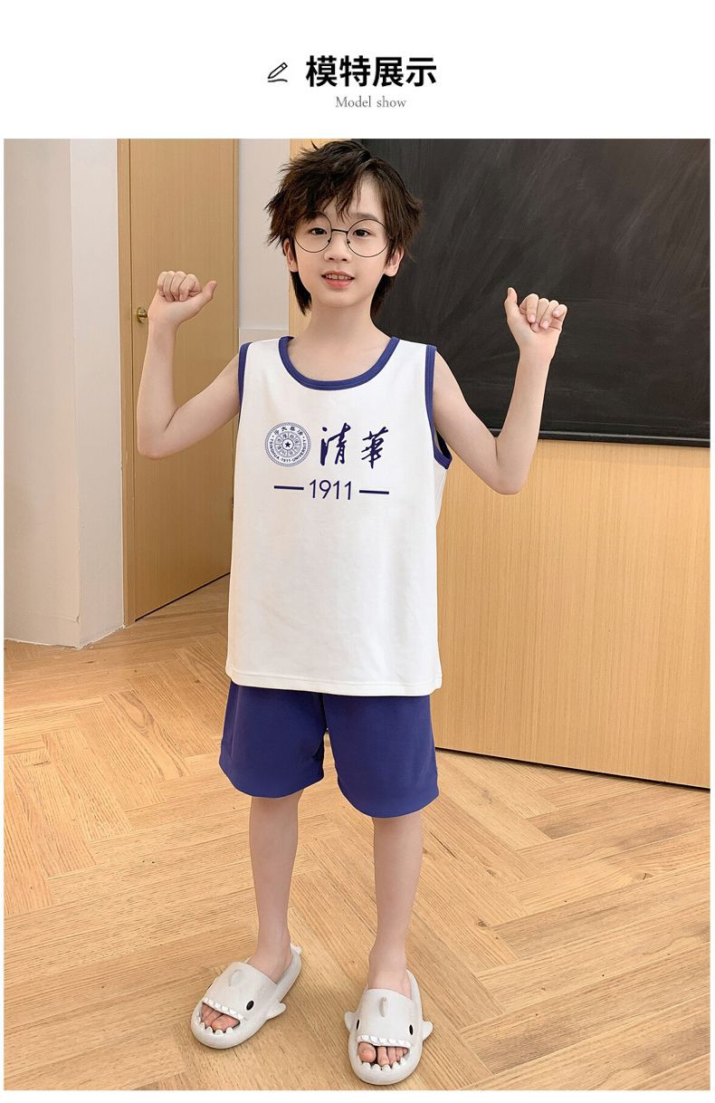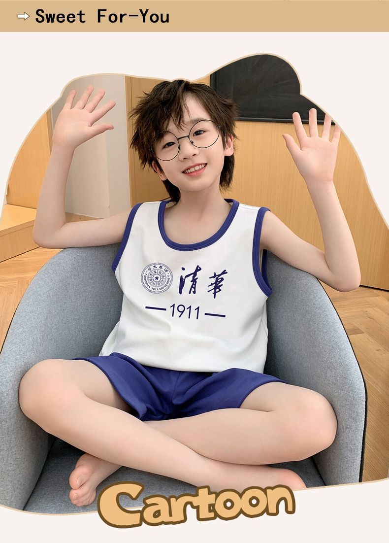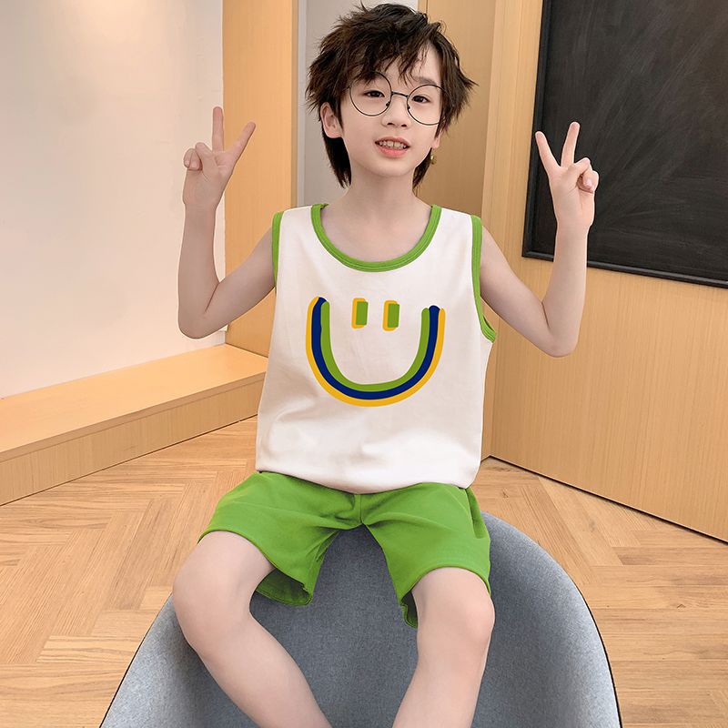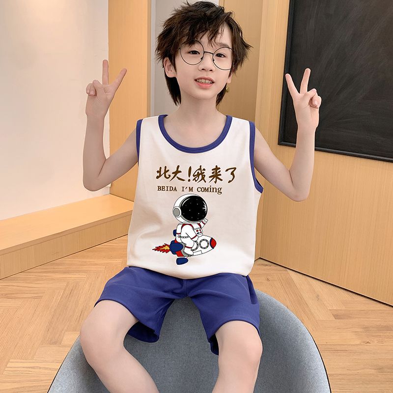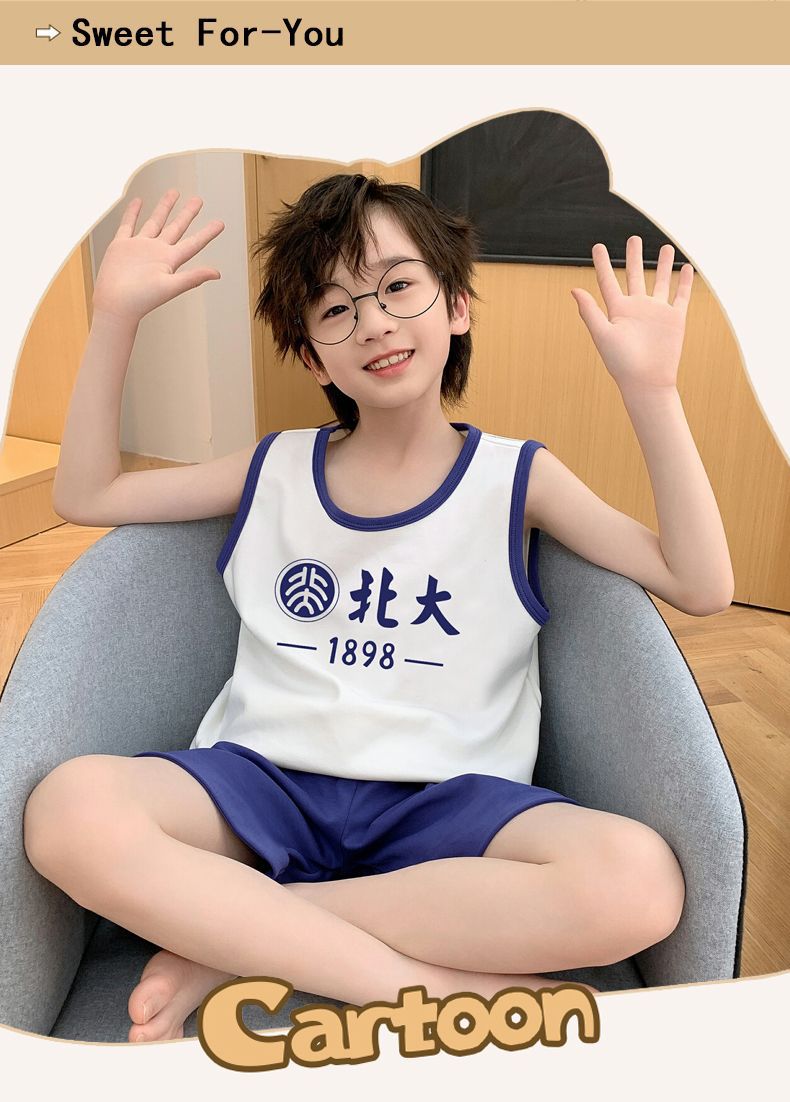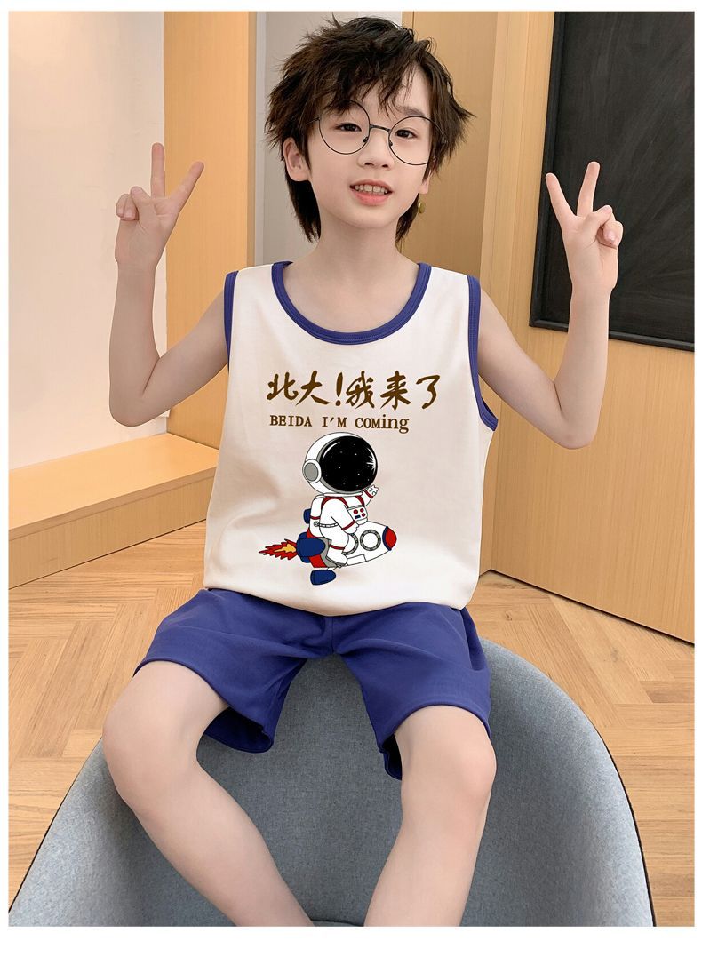 남성용 잠옷, 여름 남아용 면 조끼 반바지, 만화 캐주얼 청소년 및 아동용 홈웨어 세트, 외부에서 착용 가능
