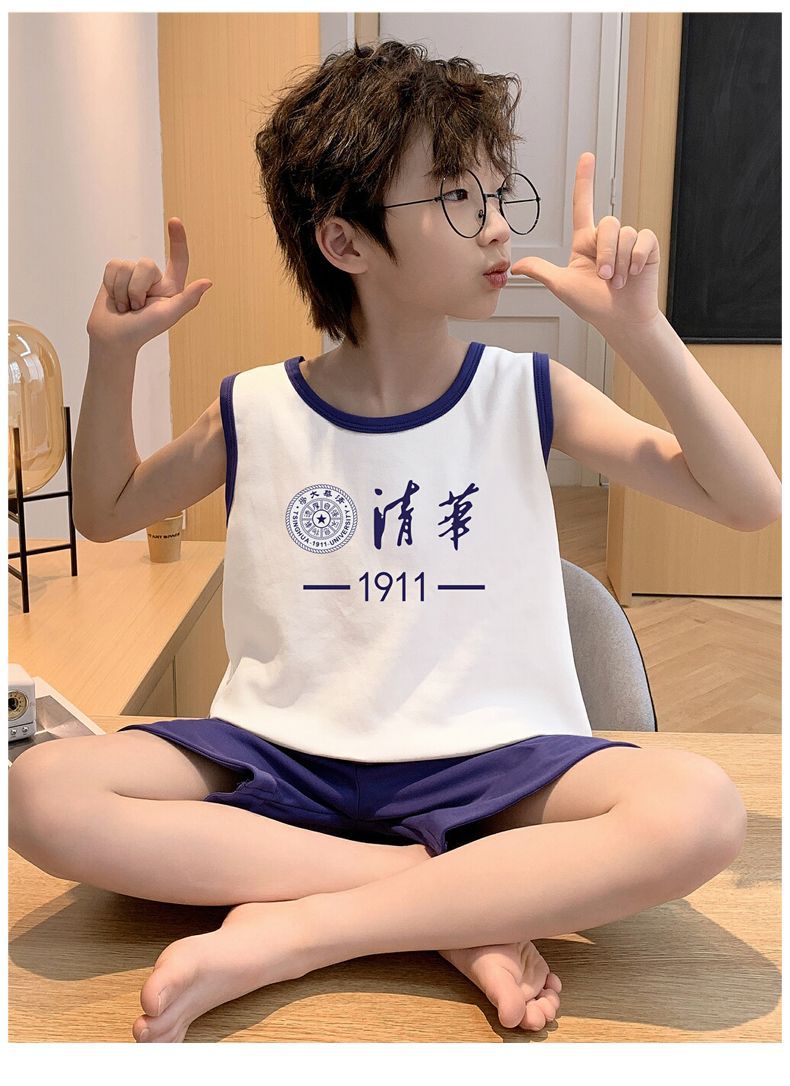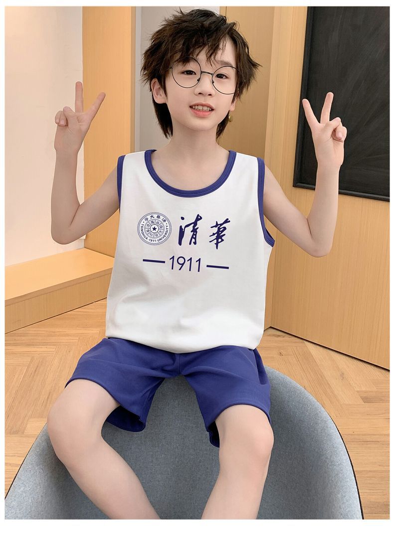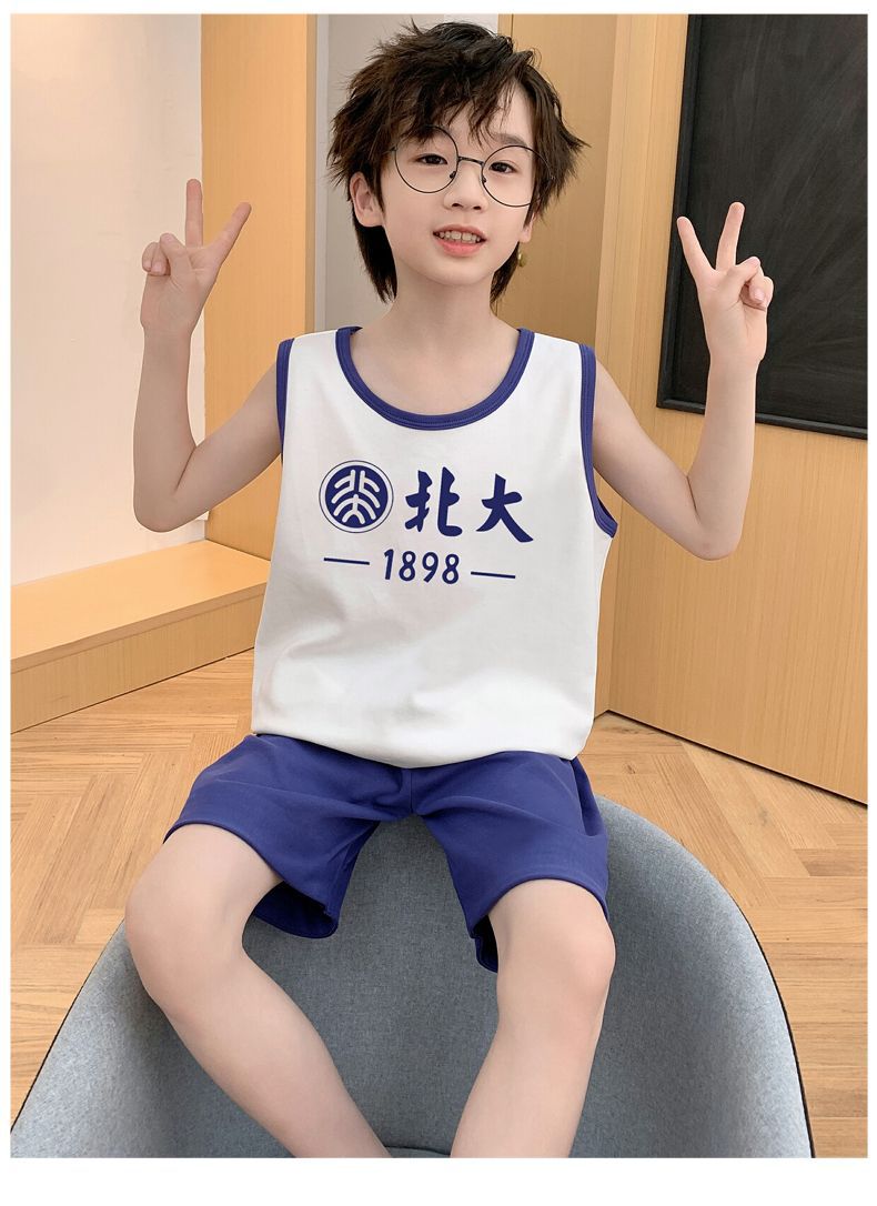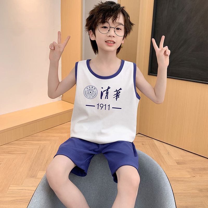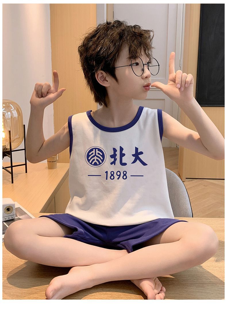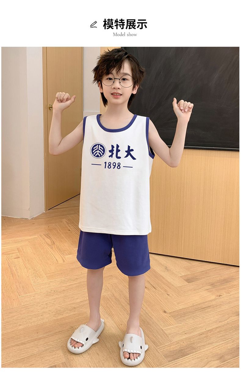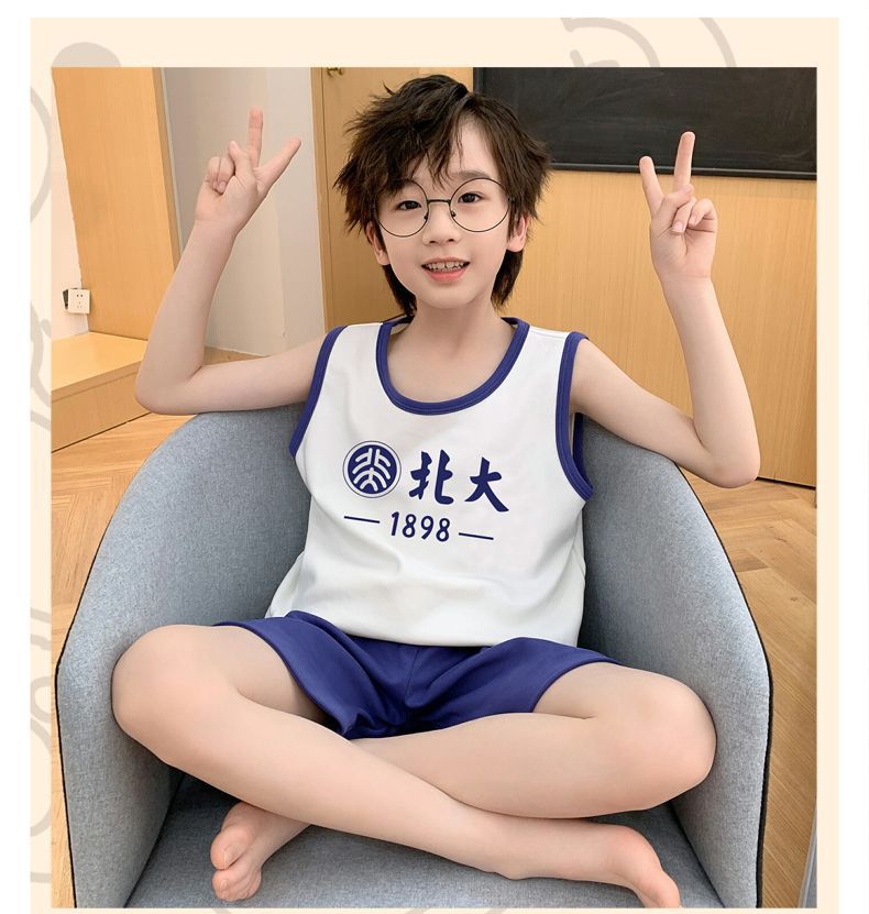 남성용 잠옷, 여름 남아용 면 조끼 반바지, 만화 캐주얼 청소년 및 아동용 홈웨어 세트, 외부에서 착용 가능