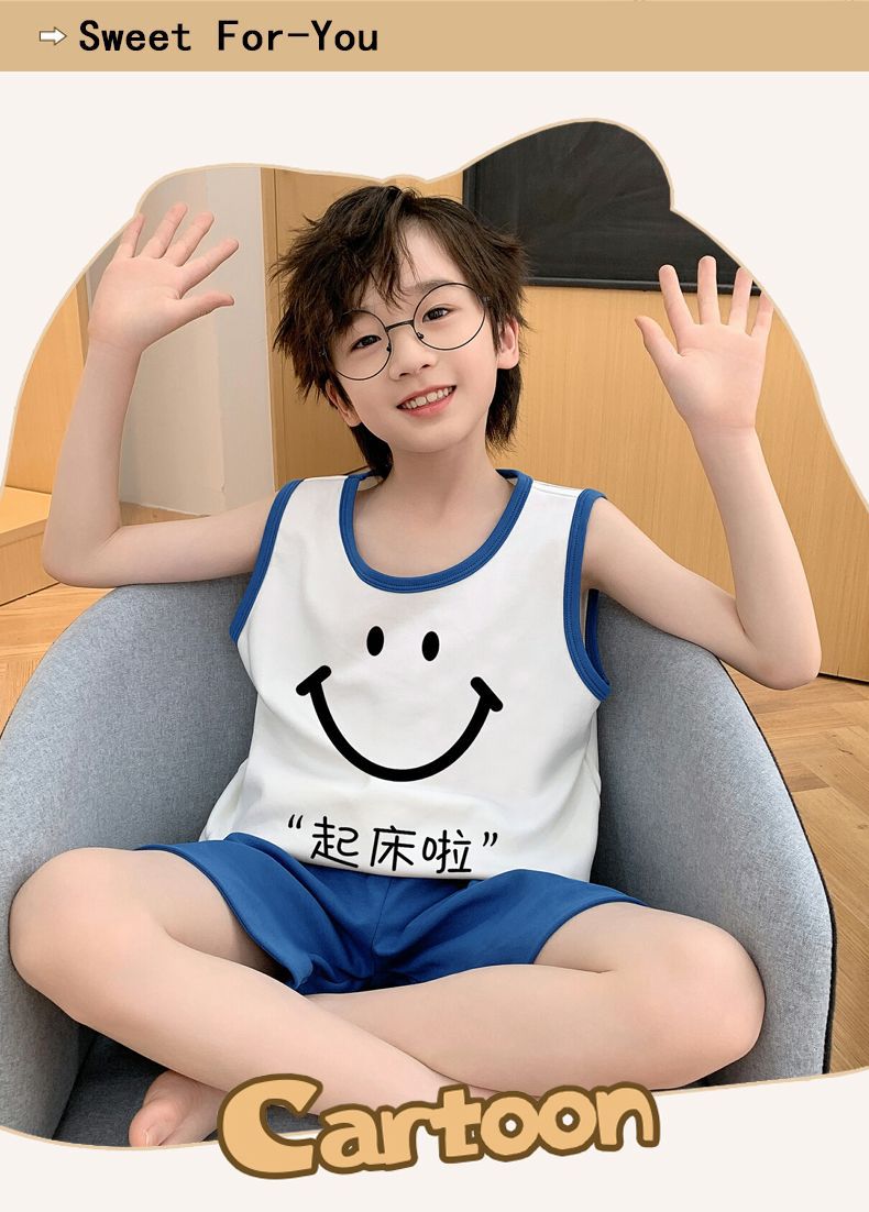 남성용 잠옷, 여름 남아용 면 조끼 반바지, 만화 캐주얼 청소년 및 아동용 홈웨어 세트, 외부에서 착용 가능스토어 가기