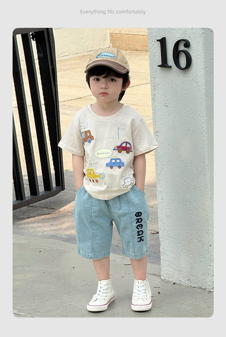 소년 티셔츠 반팔 어린이 여름 의류 여름 얇은 섹션 2025 새로운 아기 소년 반팔 티셔츠 유행 아동 의류스토어 가기