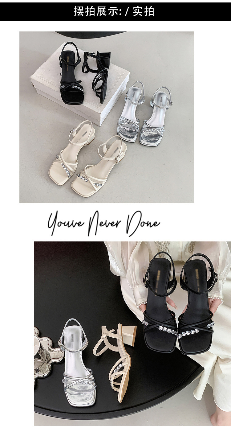 프렌치 오픈 토 라인스톤 샌들 2025 여름 신작 패션 아우터 두꺼운 굽 스퀘어 토 버클 스커트 여성화스토어 가기