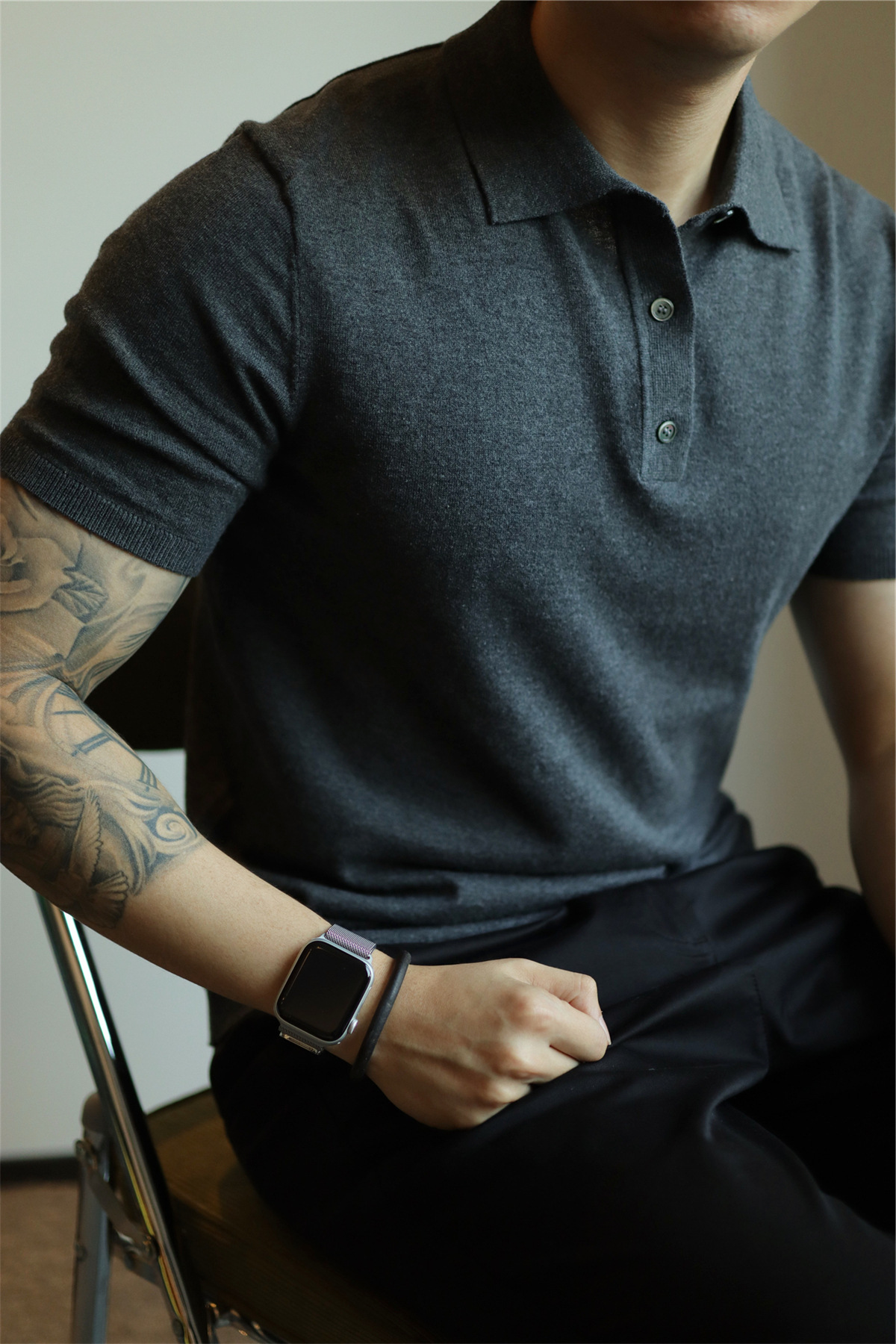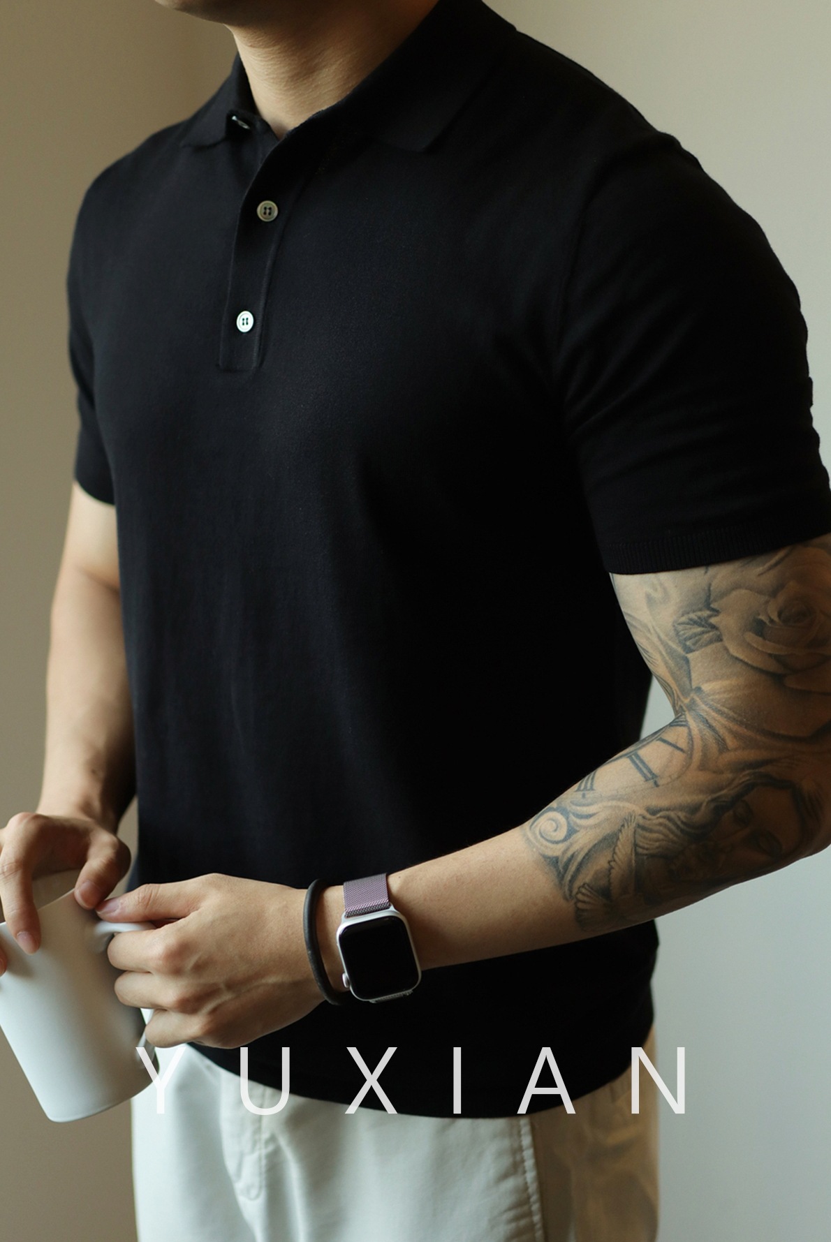 가벼운 성숙한 스타일 여름 얇은 남성 슬림 핏 캐주얼 폴로 셔츠 미국 스타일 복고풍 패션 간단한 티셔츠 반팔 트렌디 남성스토어 가기