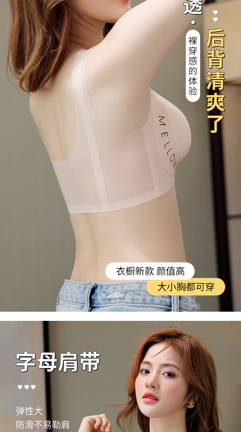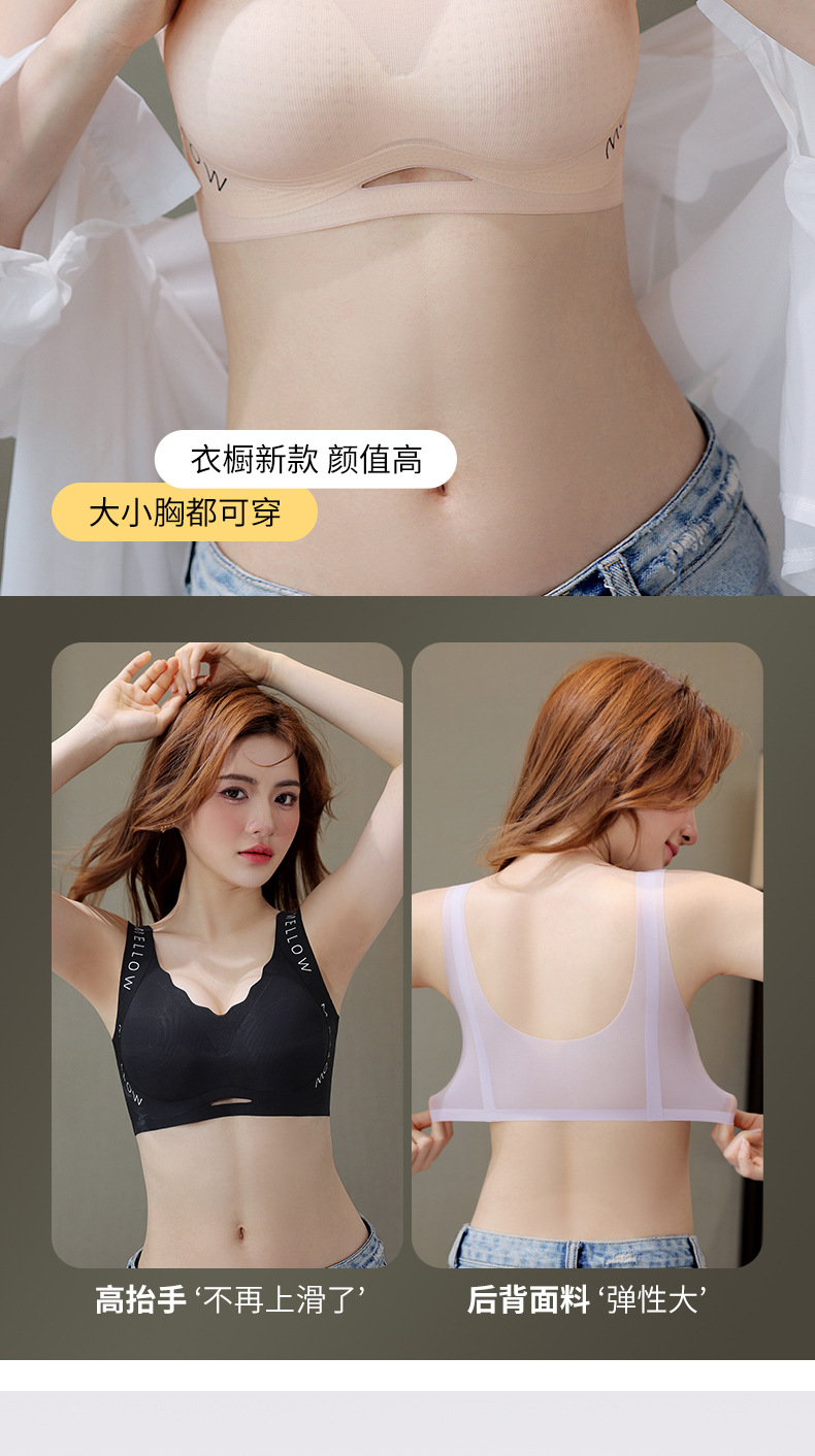 여름 얇은 리프트 편지 플러스 사이즈 원활한 속옷 여성의 큰 가슴 작은 강철 반지 조끼 플러스 사이즈 스포츠 브래지어스토어 가기