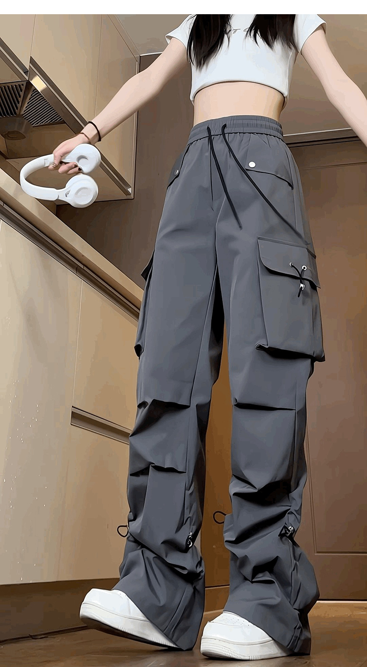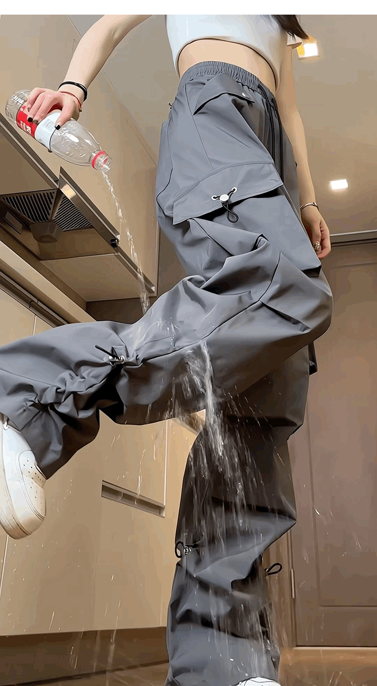 여성용 검은색 작업복 2025 새로운 스타일 작은 얇은 느슨한 방풍 및 방수 등산 여름 대형 충전 바지