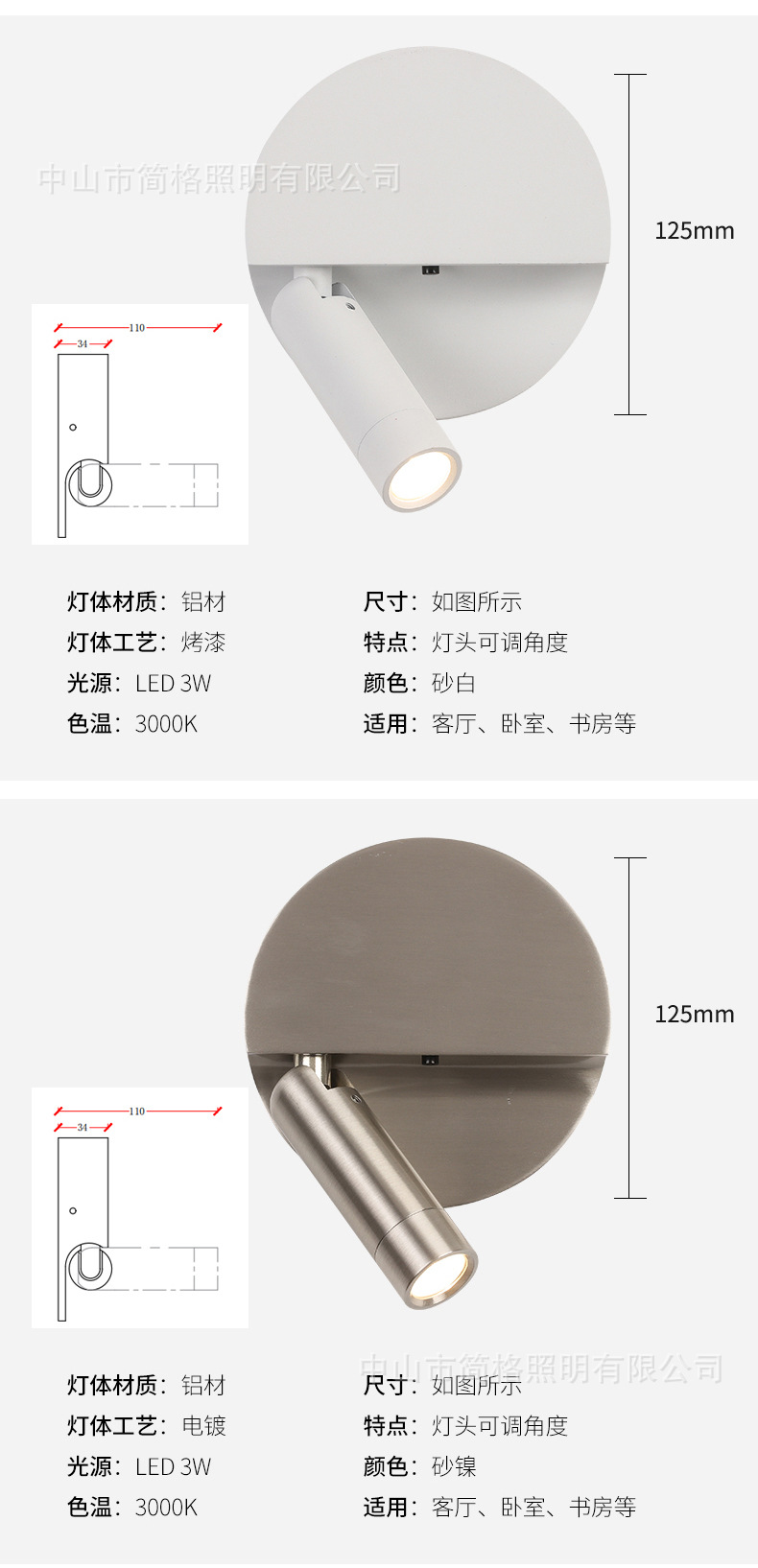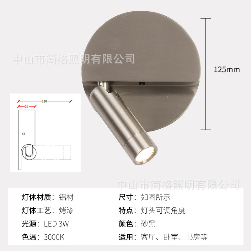 침실 침실 램프 회전 가능한 스포트라이트 분위기 램프 눈 보호 호텔 빌라 호텔 거실 통로 벽 램프