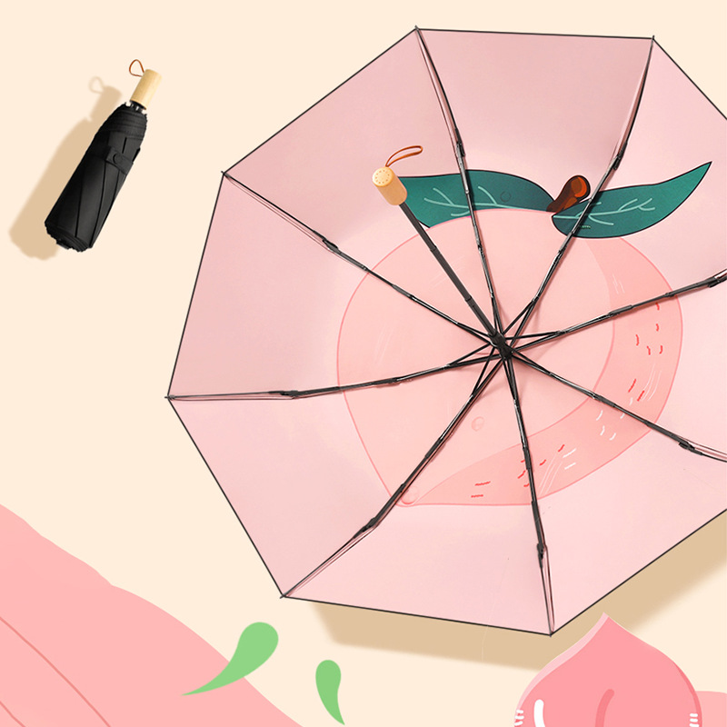 • 8k 검정색 비닐 나무 손잡이 70% off 우산-물 방지 복숭아