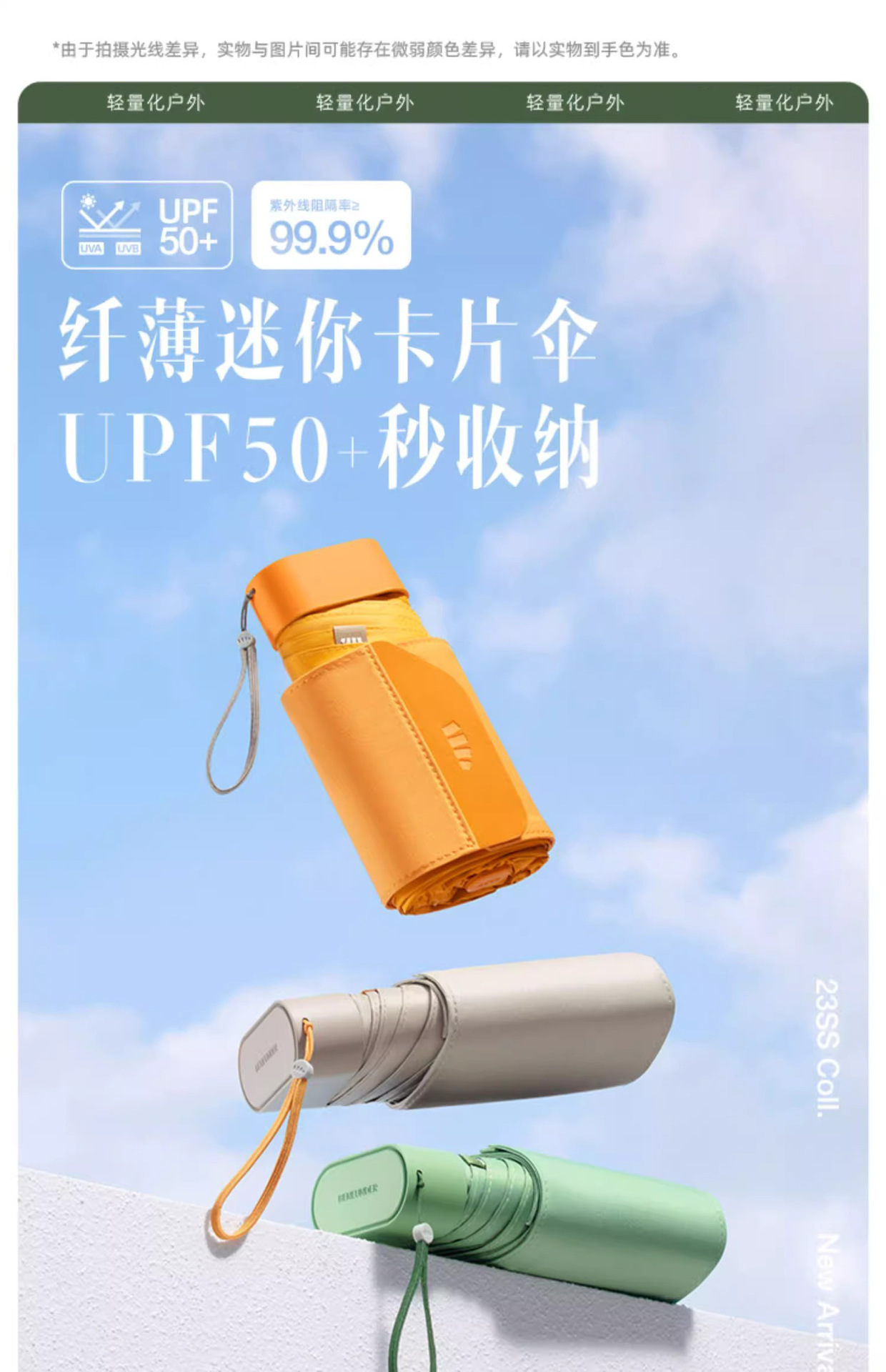 BANANAUNDER 카드 선 스크린 우산 BM66024 UV 보호 60% 접이식 차양 경량 외양 우산 여성용
