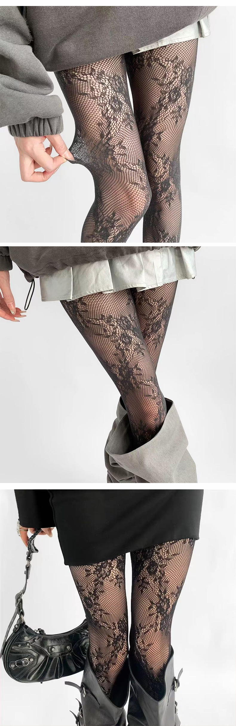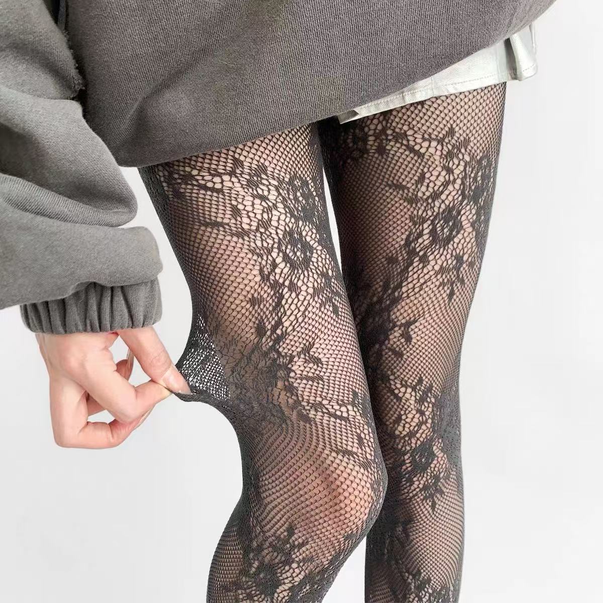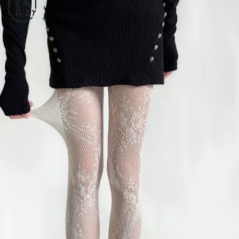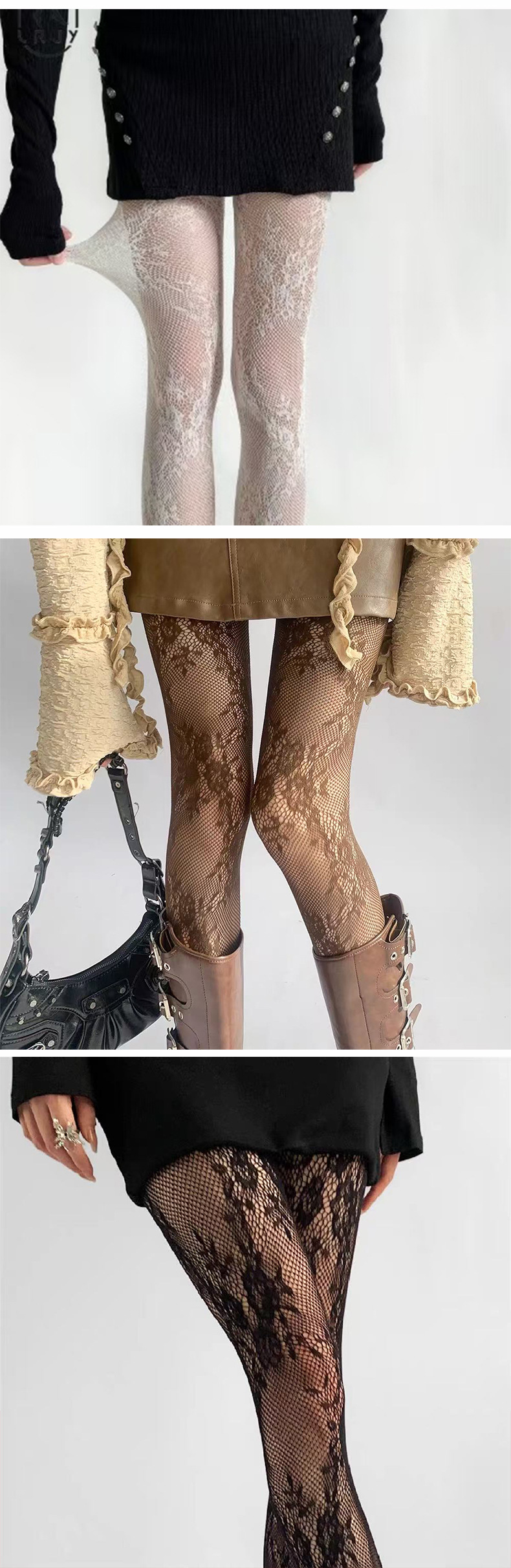 프랑스어 복고풍 중공 꽃 실크 스타킹 섹시한 자카드 Fishnet 양말 흰색 순수한 욕망 레이스 바닥 양말
