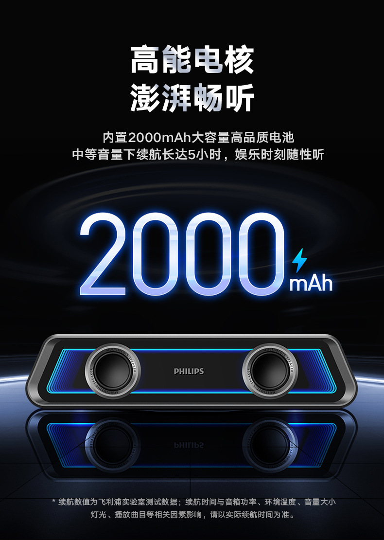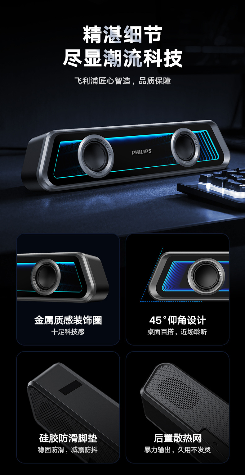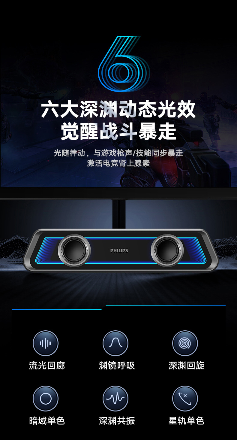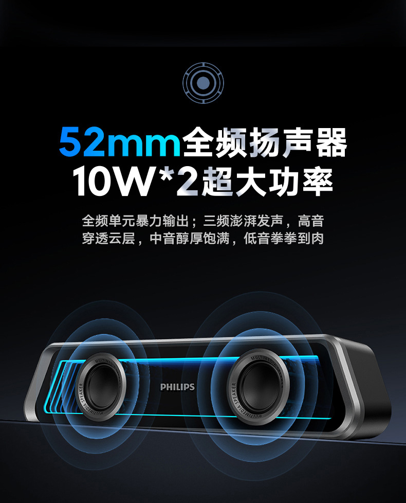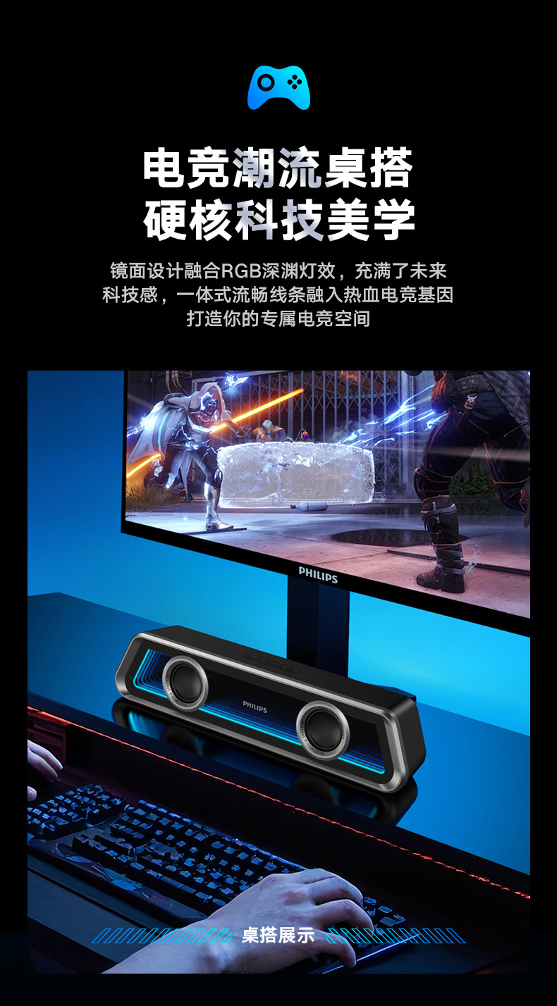 필립스 미러 블루투스 스피커 RGB 조명 효과 긴 스트립 고음역 홈 e-스포츠 게임 오픈 블랙 스피커스토어 가기
