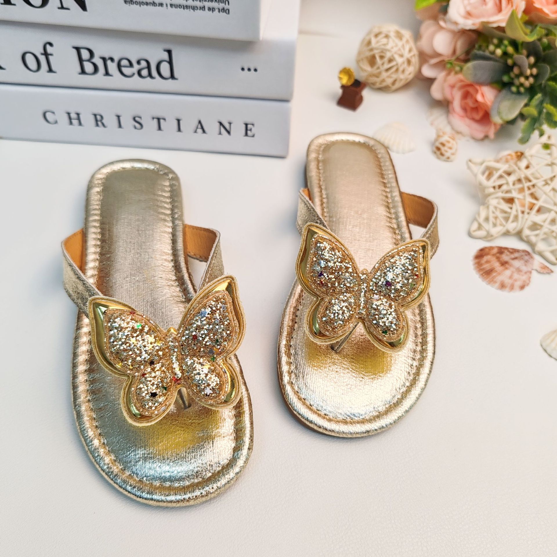 여름 신작 어린이 슬리퍼, 슬리퍼, 여아 신발, 비치 슈즈, 유아 신발, 나비 슬리퍼, 도매