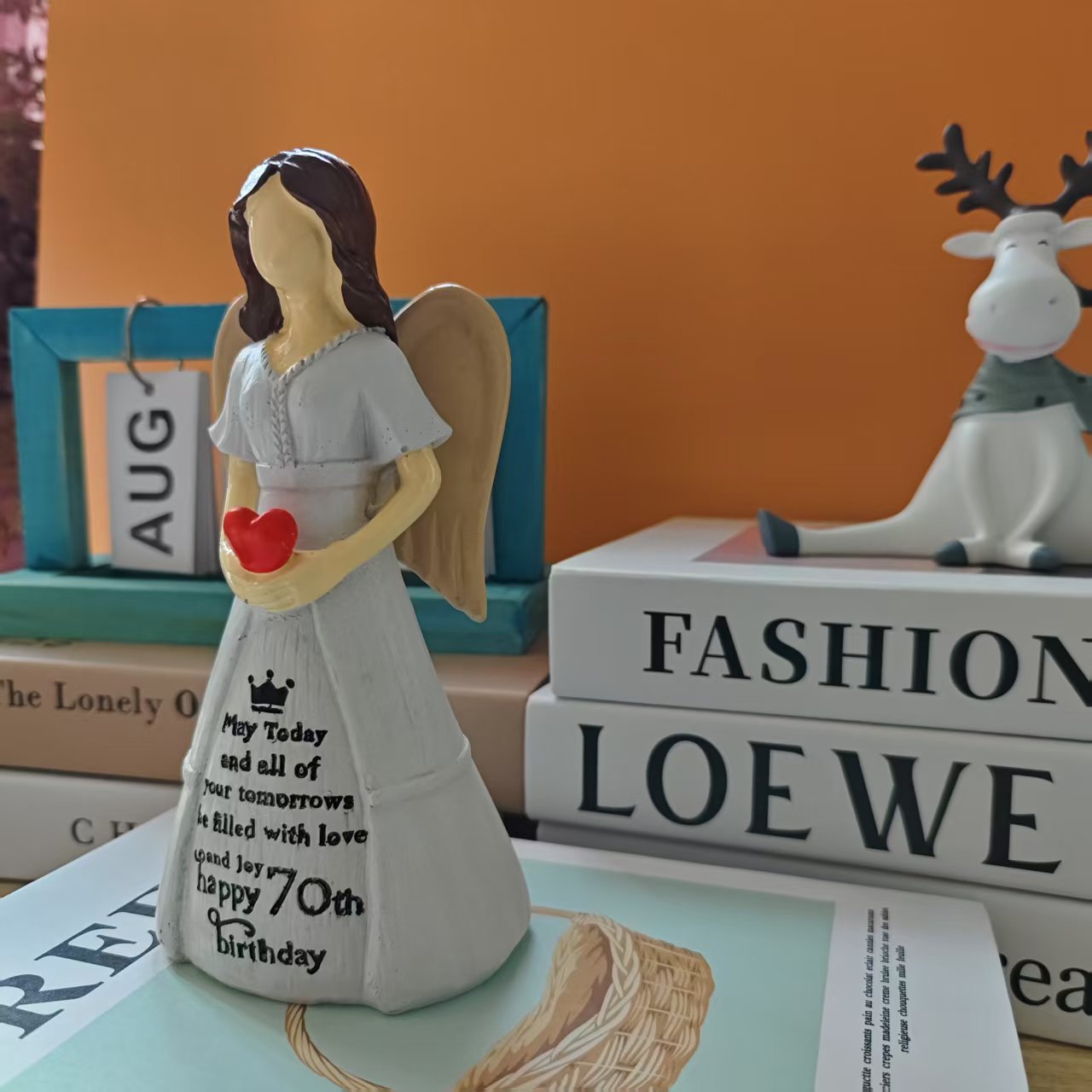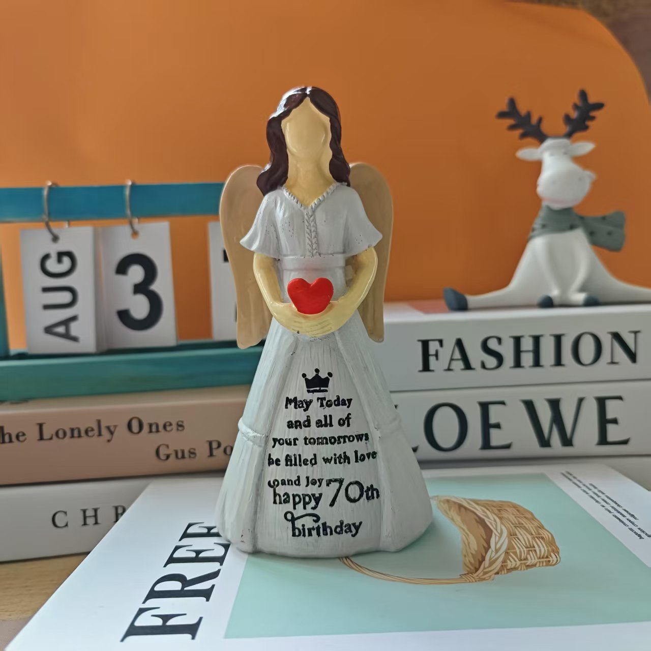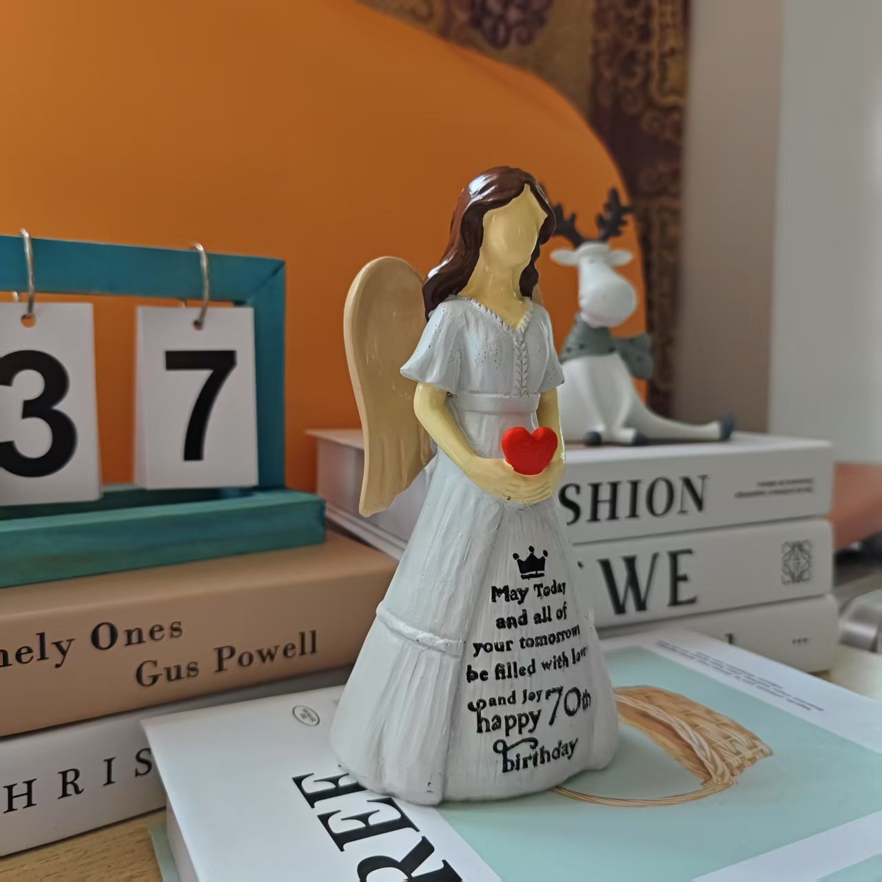 새로운 사랑의 천사 조각 장식품을 들고 있는 70번째 생일 기념 선물 홈 데스크탑 장식 수지 장식품스토어 가기