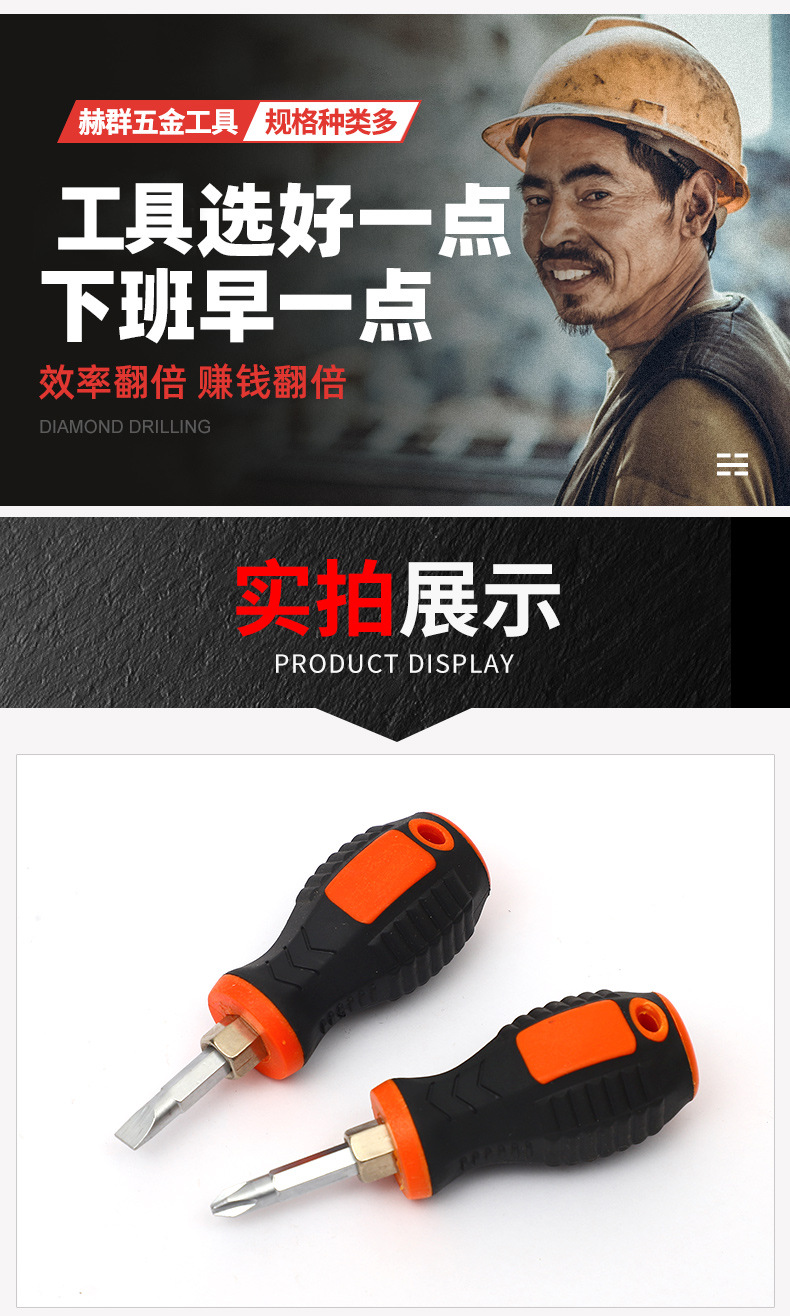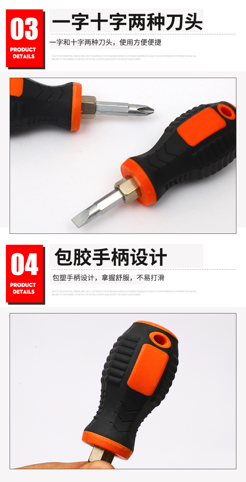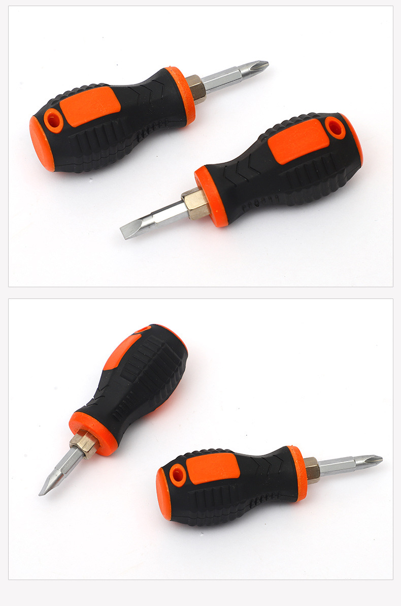 공장 도매 짧은 손잡이 드라이버 미니 양용 드라이버 십자형 일자형 고무 손잡이 드라이버