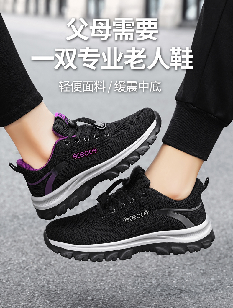 노인의 신발 여성의 봄과 여름 새로운 도착 통기성 메쉬 운동화 소프트 솔이있는 중년 및 노인을위한 미끄럼 방지 편안한 워킹 슈즈