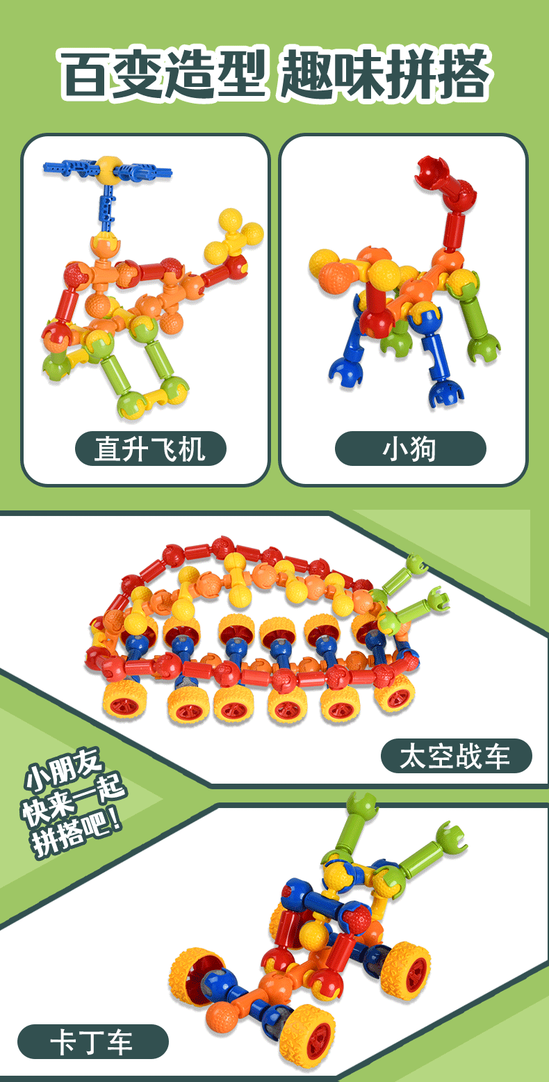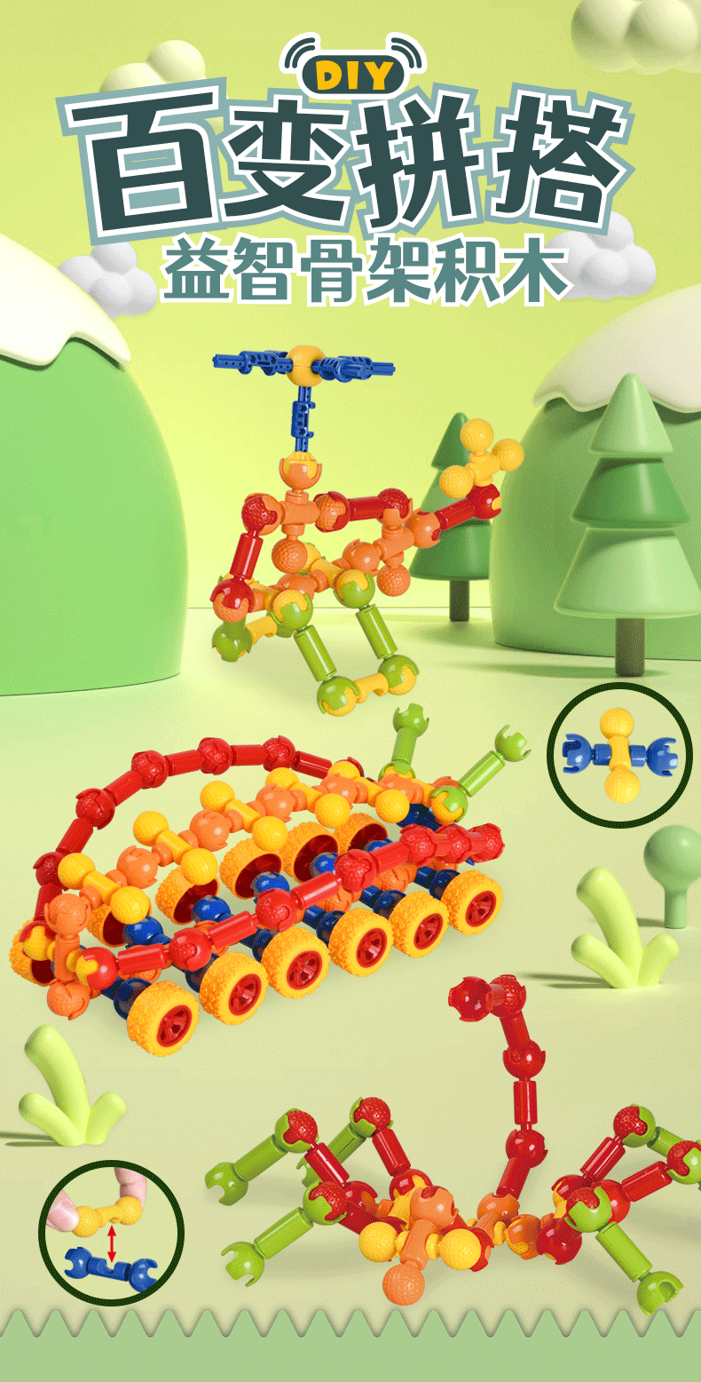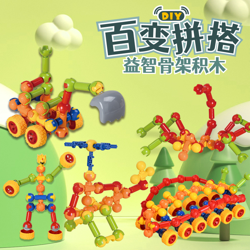 국경 간 어린이의 다양한 뼈대 관절 빌딩 블록 다기능 대형 입자 DIY 크리 에이 티브 조립 교육 장난감스토어 가기