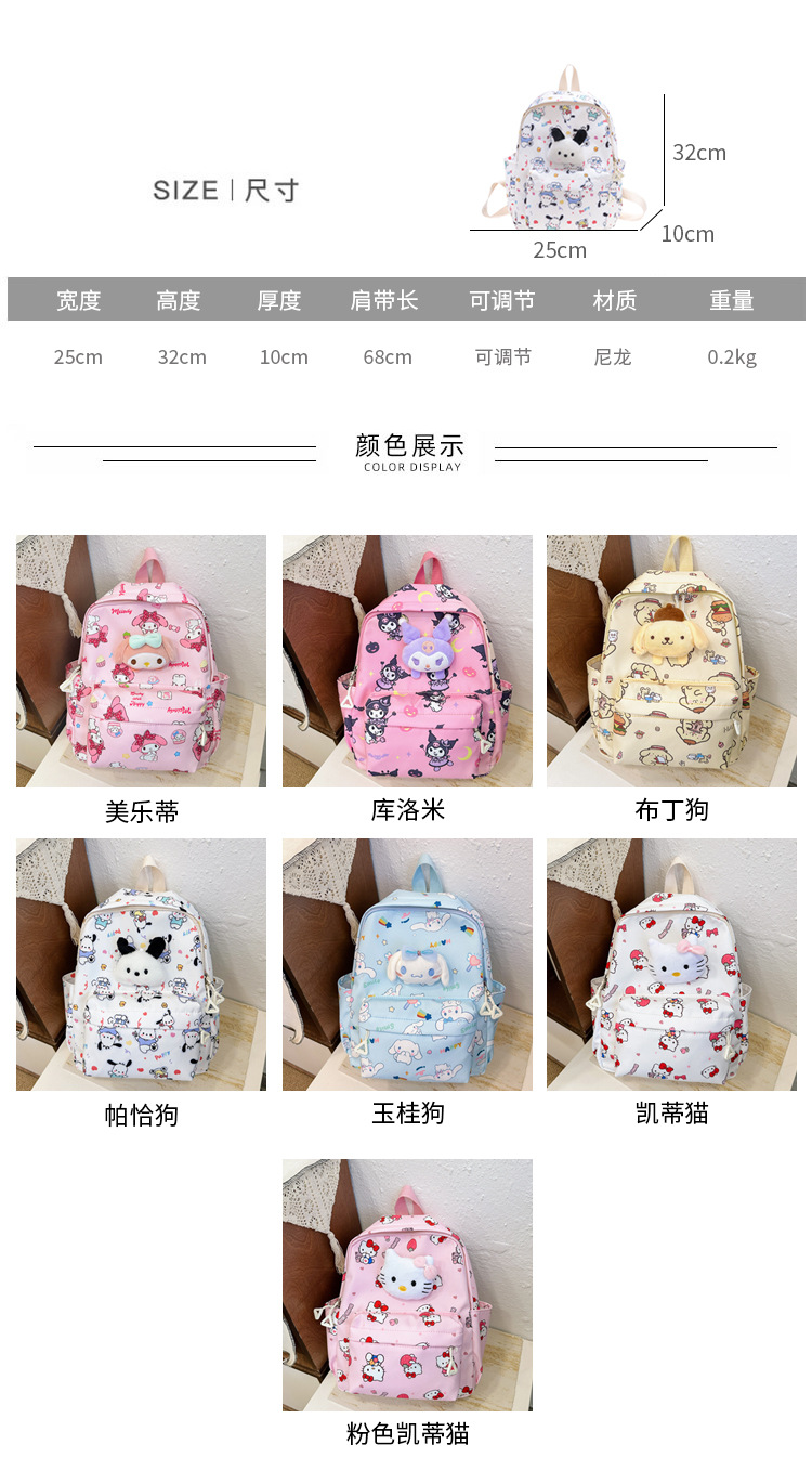국경 간 새로운 Sanrio 어린이 배낭 만화 인형 여행 배낭 유치원 아기 학교 가방