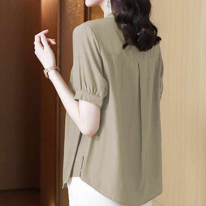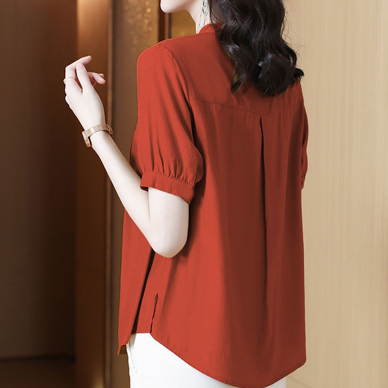 여성용 쉬폰 셔츠 여름 반팔 신작 여름 아름답고 패셔너블한 쉬폰 셔츠 여성스러운 엄마 셔츠 탑