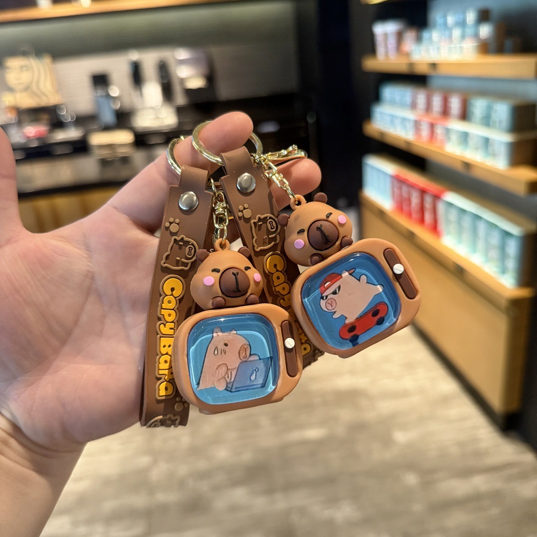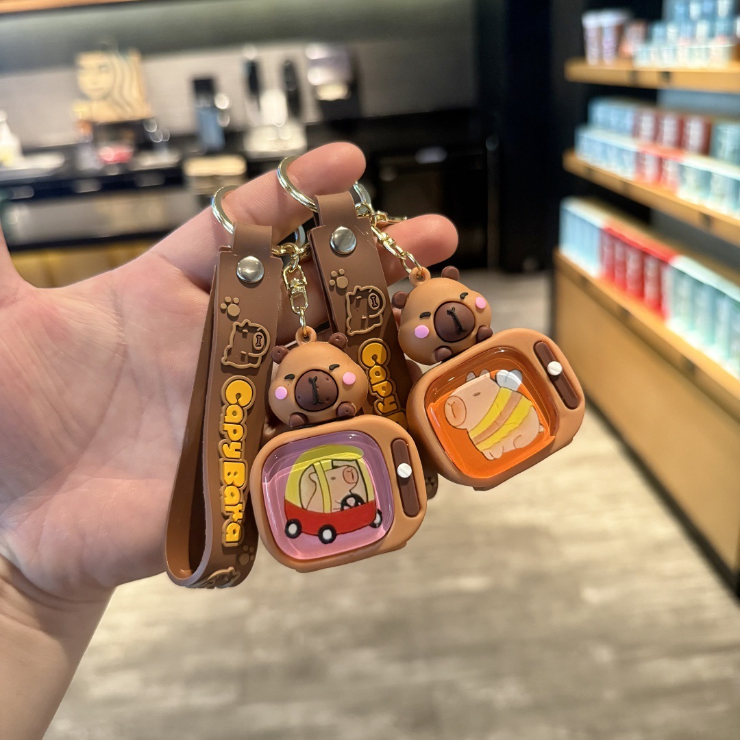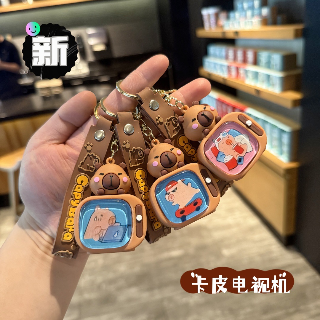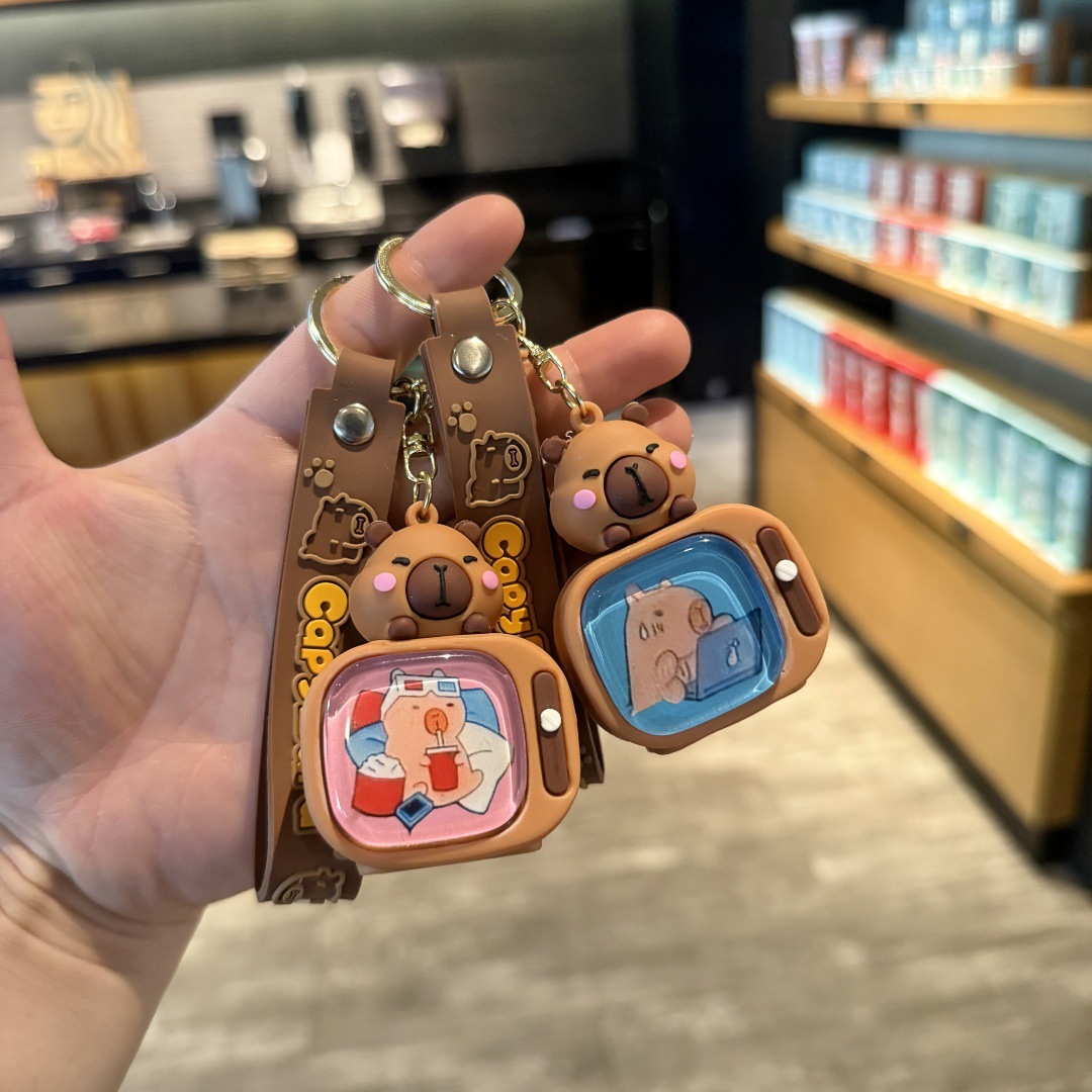Kapibala 빛나는 TV 키 체인 Capybara Schoolbag 펜던트 어린이 장난감 커플 선물 도매