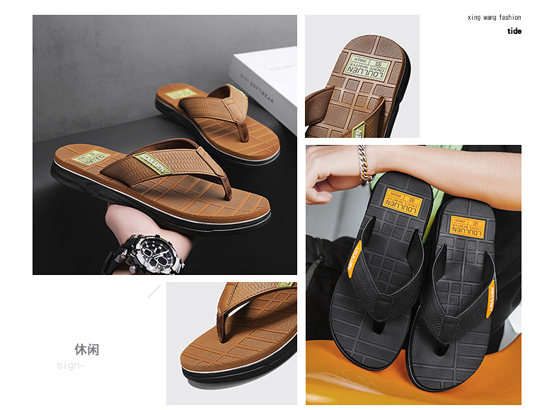 남성용 여름 아우터 슬리퍼 2025 새로운 트렌디 플립 플롭 미끄럼 방지 내마모성 비치 샌들 남성용 샌들
