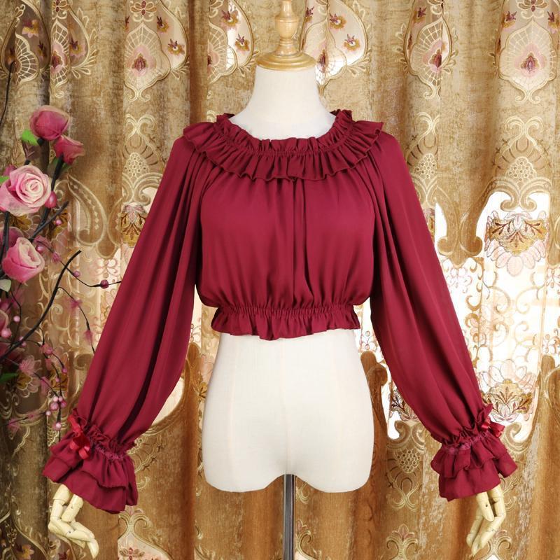 오리지널 봄 여름 신작 로리타 쉬폰 루즈 보텀 셔츠 jsk jishi 소프트 소녀 긴팔 탑 셔츠스토어 가기