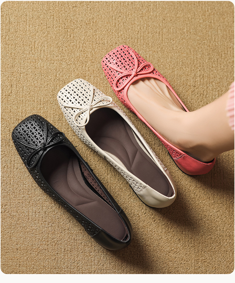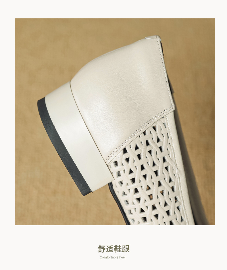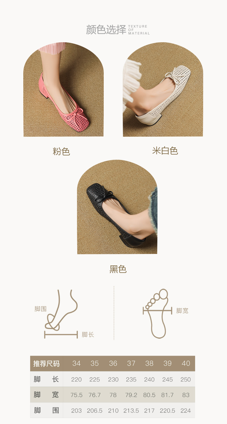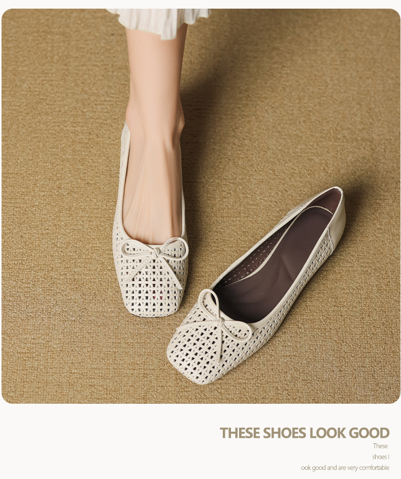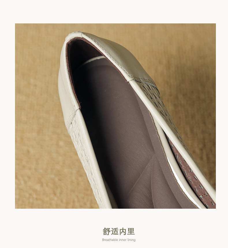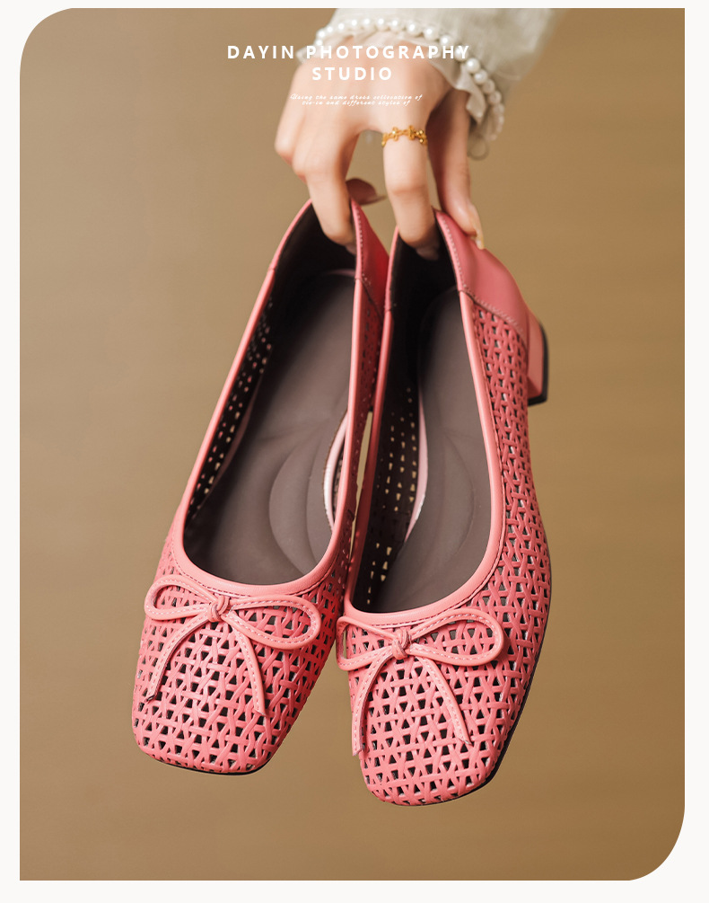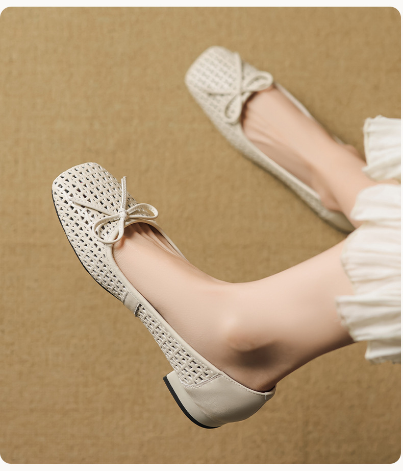 소 가죽 프랑스 활 사각형 발가락 신발의 첫 번째 레이어 여성용 속이 빈 낮은 발 뒤꿈치 비니 신발 두꺼운 힐 Mary Jane 신발 플랫 슈즈