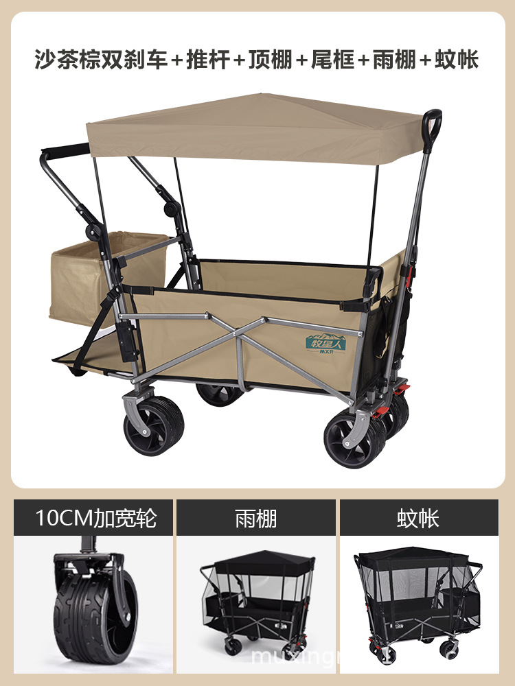 목성인 캠핑카 트롤리, 확장형, 앉을 수 있고 접을 수 있으며, 레인 캐노피가 있는 트레일러, 이중 브레이크 디자인