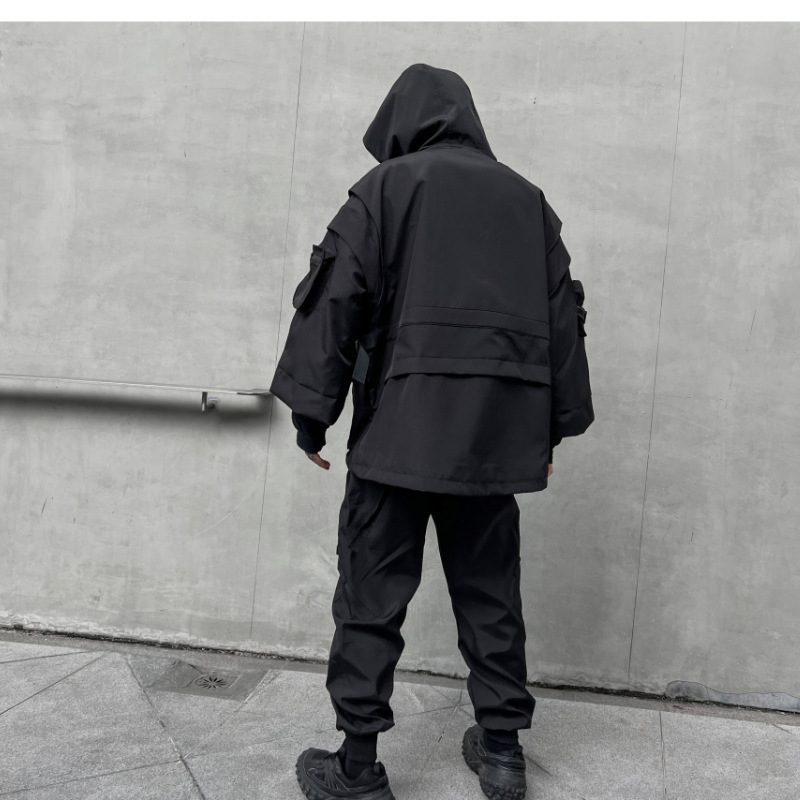 헤비 다크 스포츠 아웃도어 기능성 스타일 루즈 워크 재킷 트렌디 브랜드 후드 7부 소매 재킷 남성 재킷