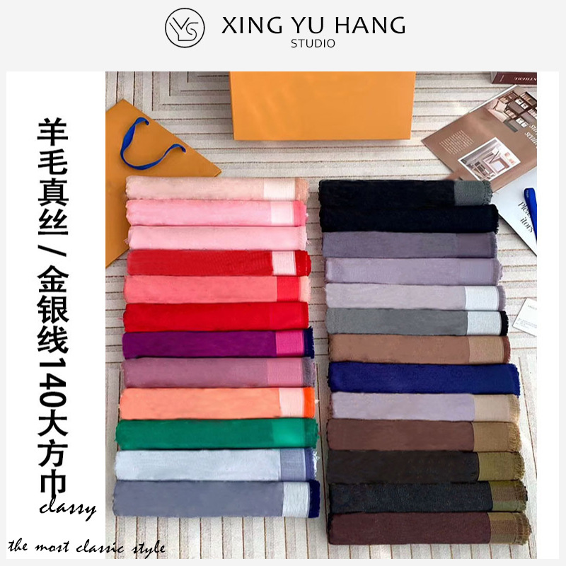 여성용 고급 스타 스타일 울 실크 스카프, 캐시미어 금은 실크 대형 사각형 스카프, 에어컨 룸 숄 겸용스토어 가기