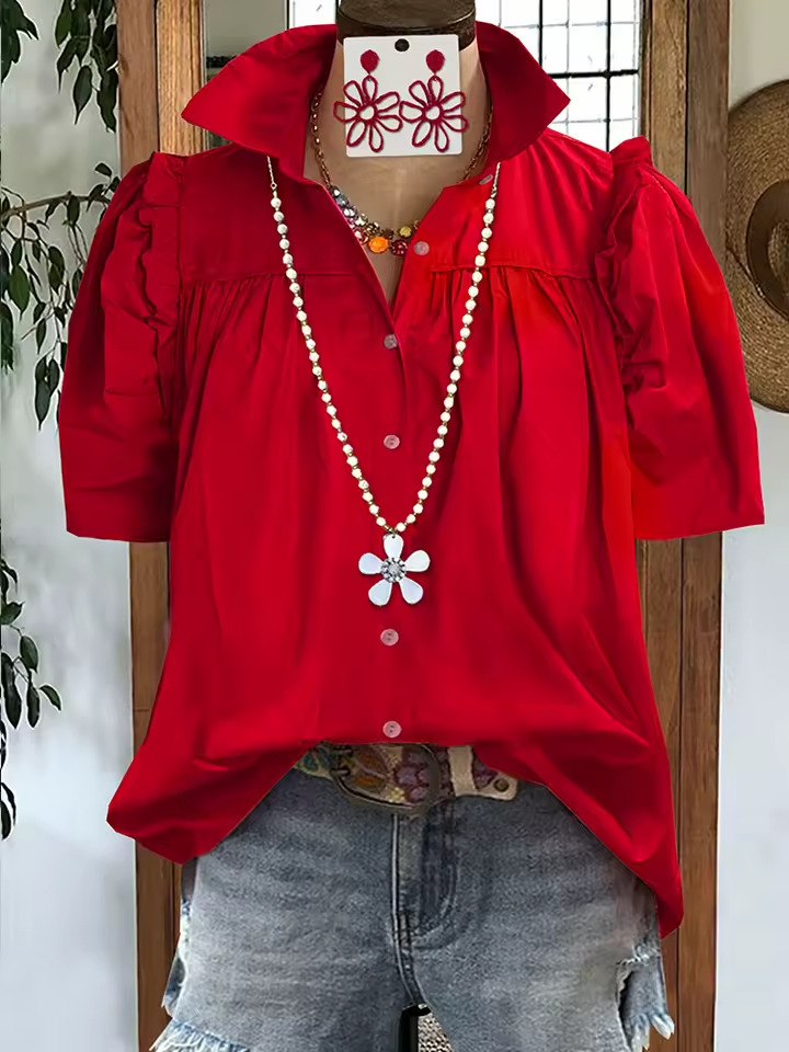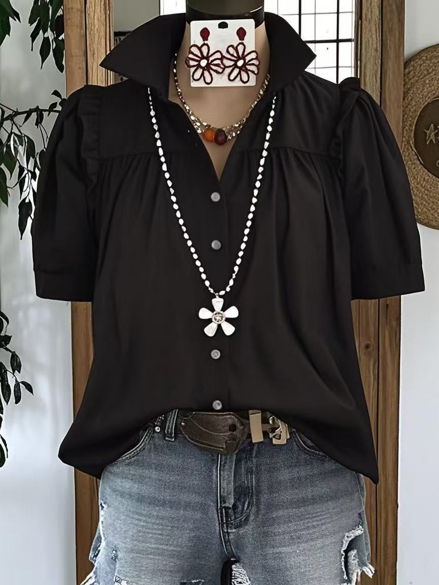 유럽과 미국의 국경 간 Amazon 여름 신작 여성 캐주얼 루즈 패션 플리츠 솔리드 컬러 스플 라이스 반소매 셔츠