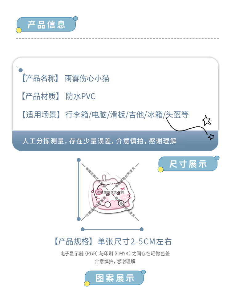 130 비와 안개 스티커, 귀엽고 달콤한 만화 치유 노트북 재료 스티커, 방수