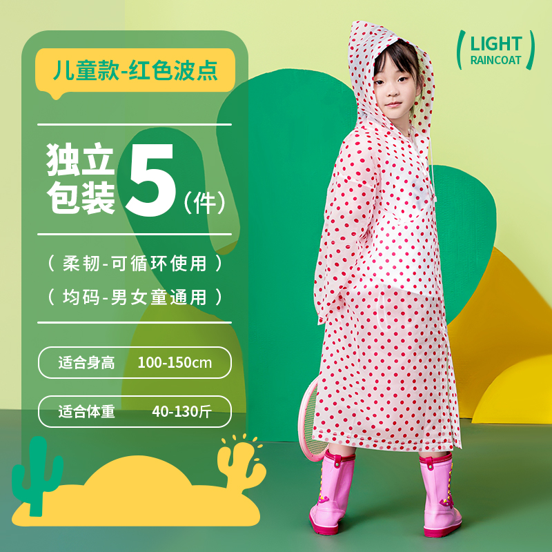 일회용 비옷 어린이 투명 두꺼운 긴 웨이브 도트 백 초등학생을위한 휴대용 학교 여행 판초