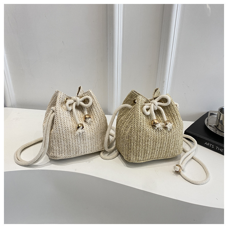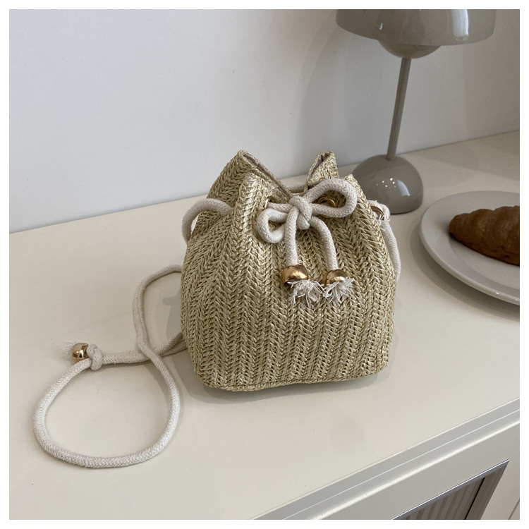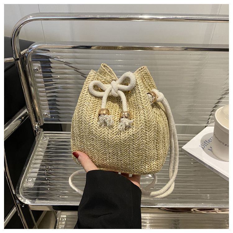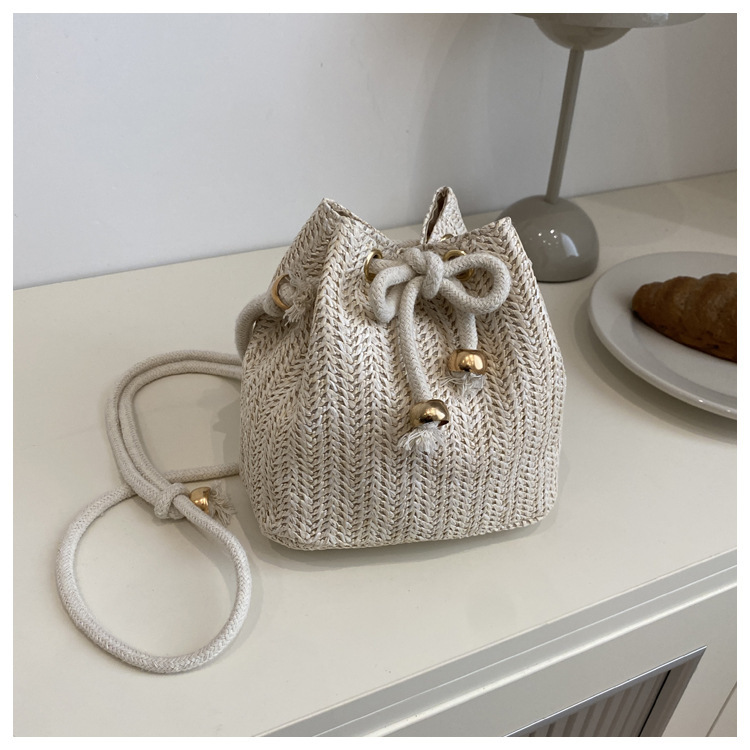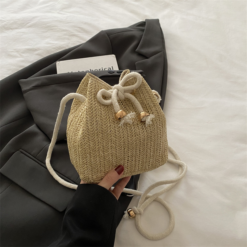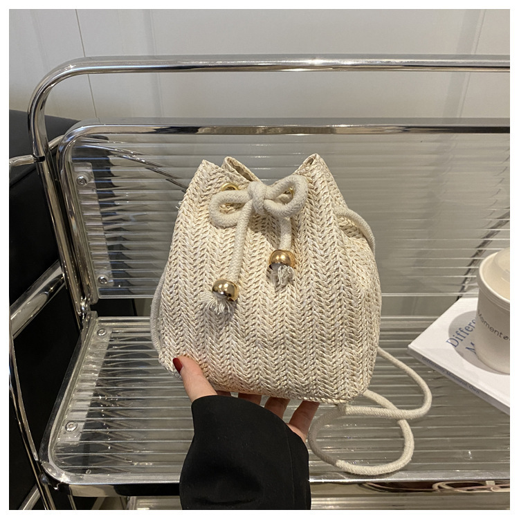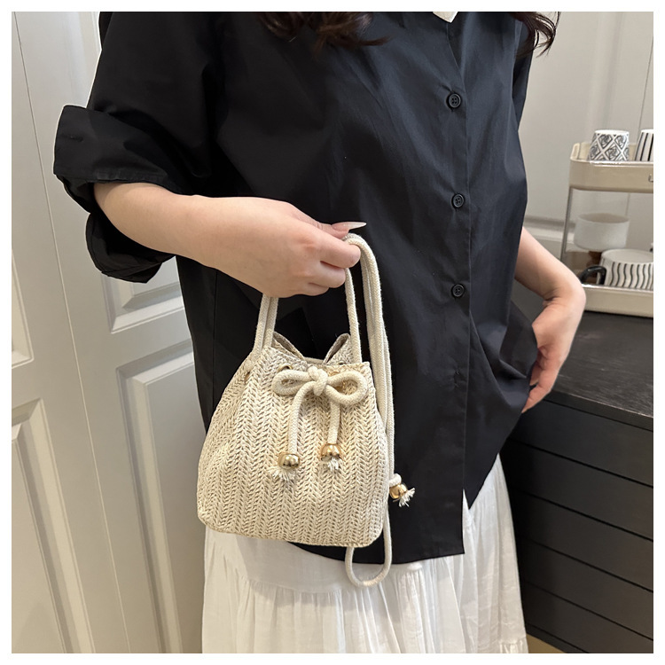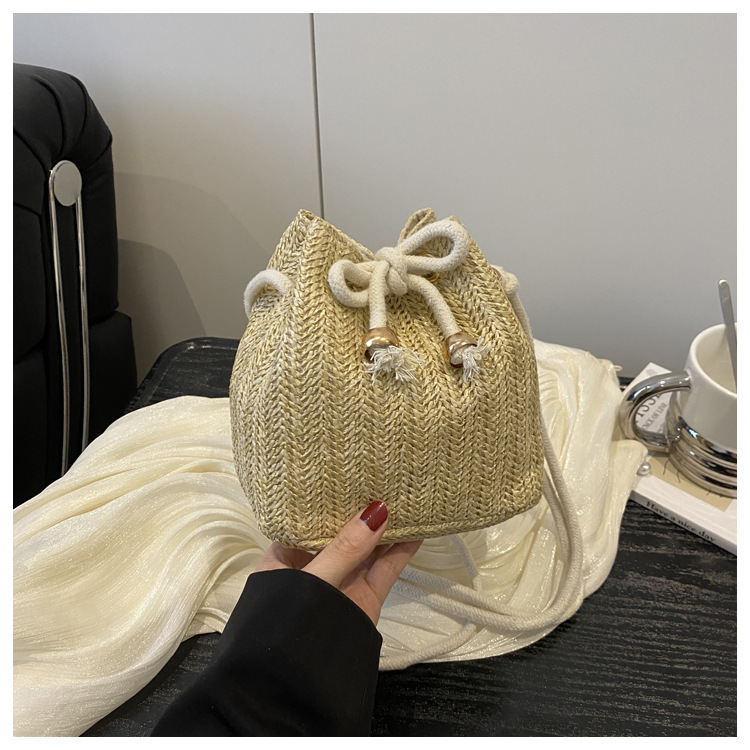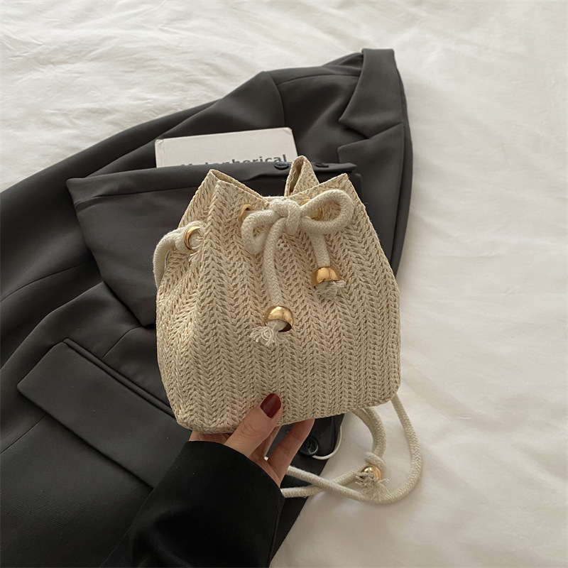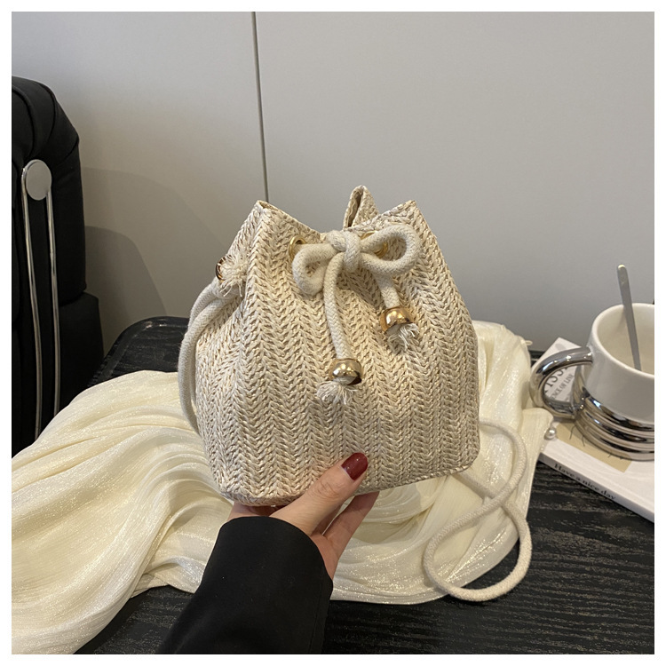 드로우 밴드 여성 2025 여름 새로운 세련된 어깨 크로스 바디 버킷 백 트렌디 한 가방을 짠 유행 간단한 작은 가방