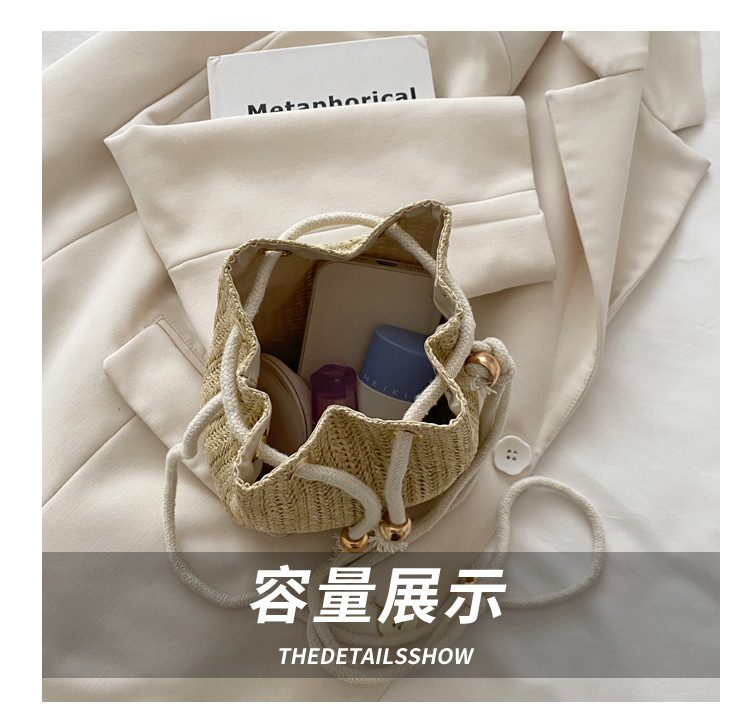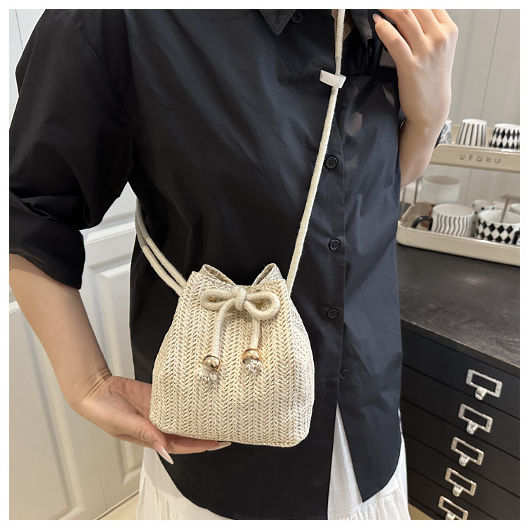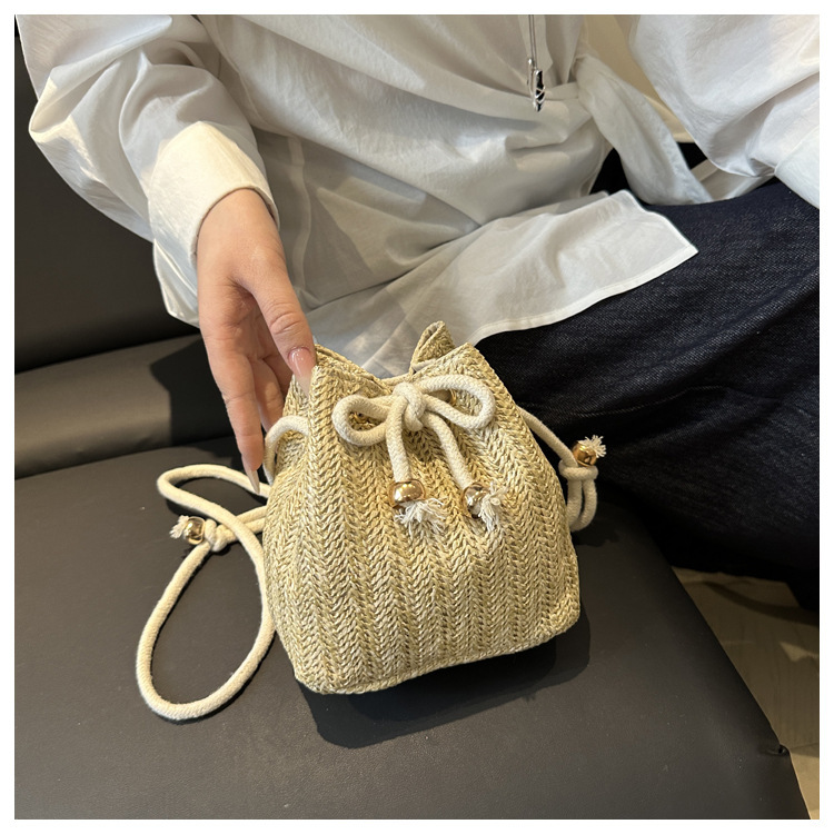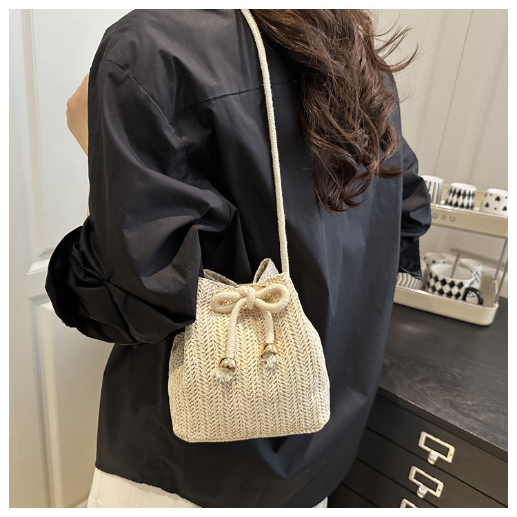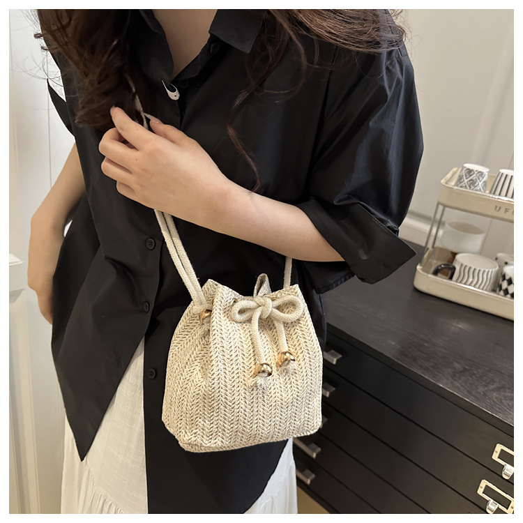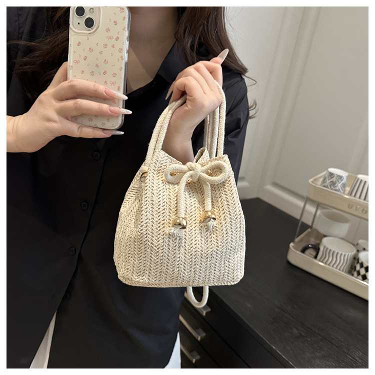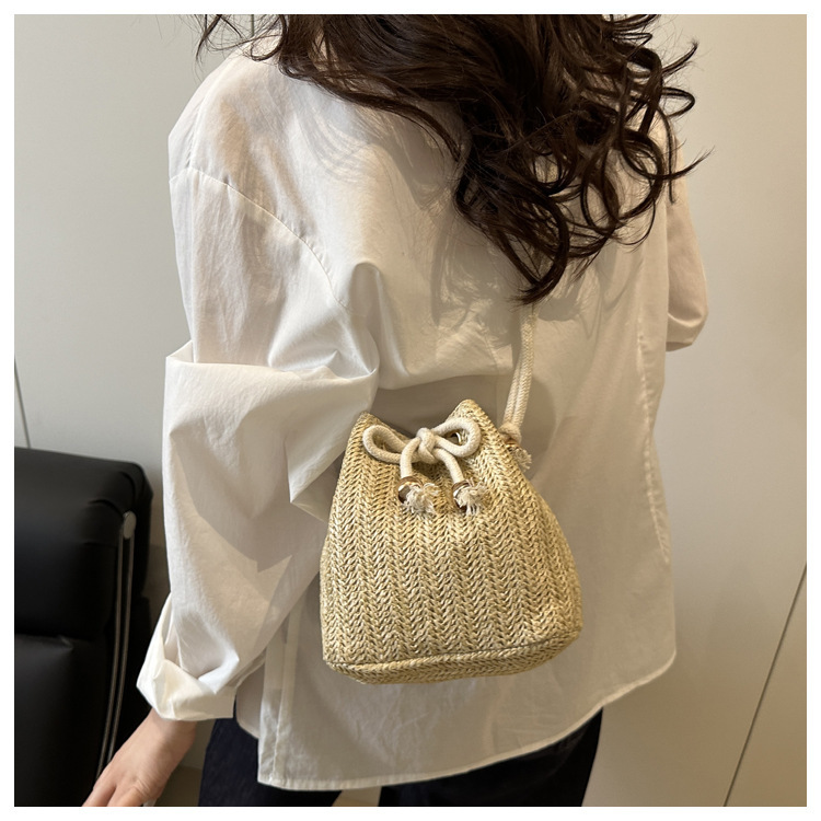 드로우 밴드 여성 2025 여름 새로운 세련된 어깨 크로스 바디 버킷 백 트렌디 한 가방을 짠 유행 간단한 작은 가방스토어 가기