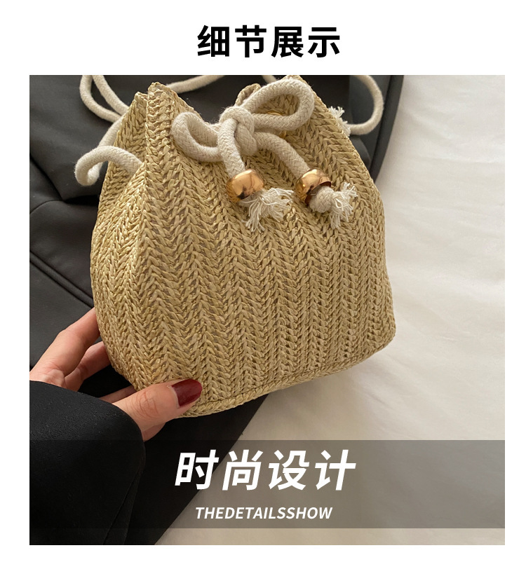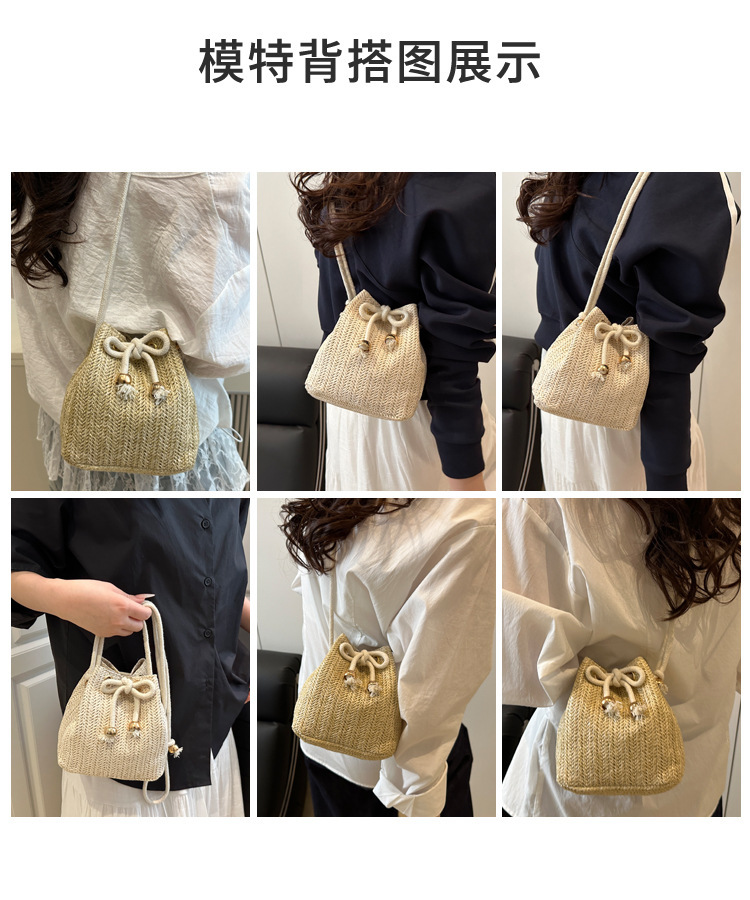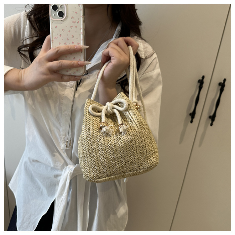 编织时尚简约抽带小包包女2025夏季新款洋气单肩斜挎水桶包潮流包