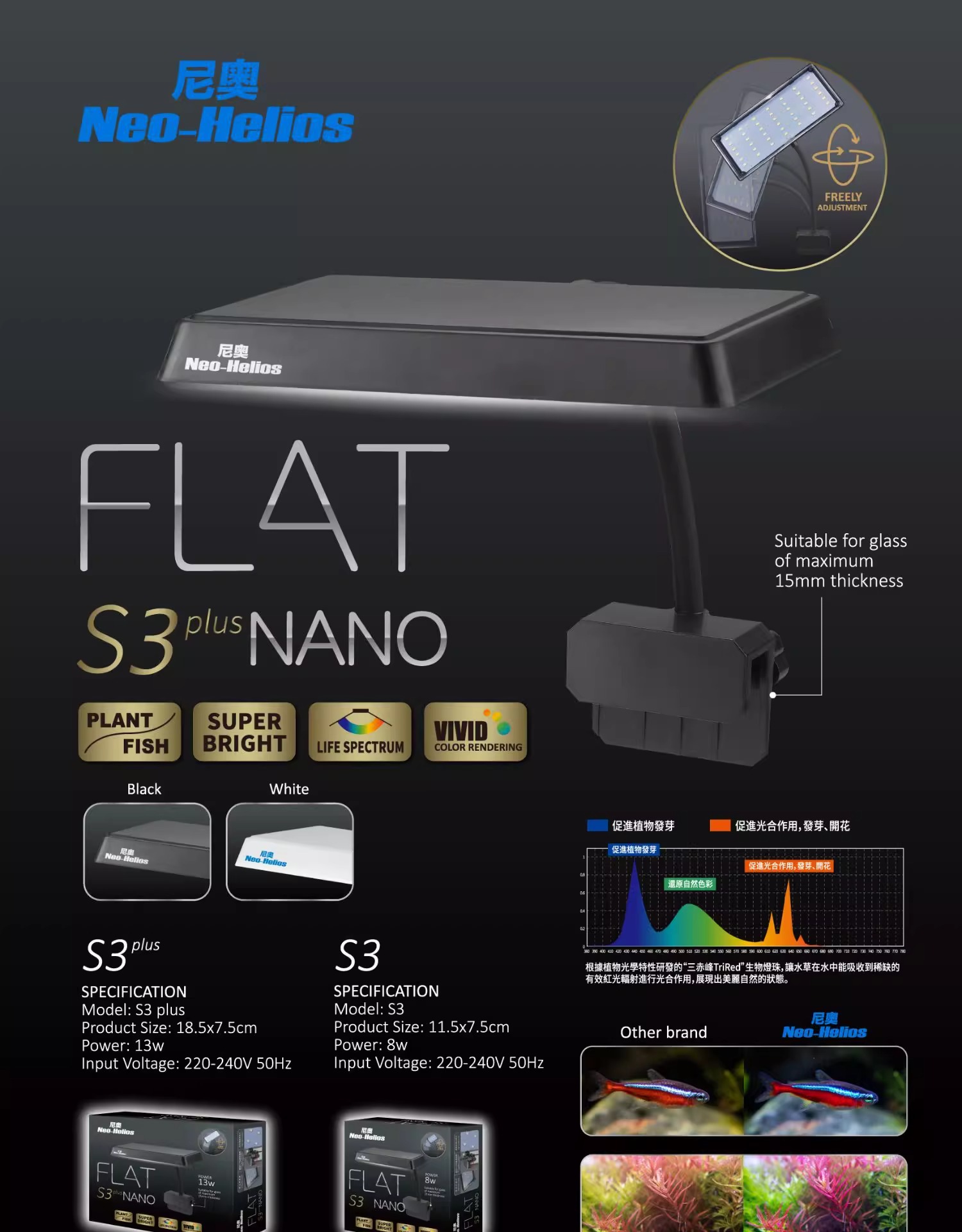 Neo S3PLUS 2세대 RGB 색상 및 밝기 증가 LED 조명 수조 백색광 전체 스펙트럼 수생 식물 조명 조명 소형 탱크 조명